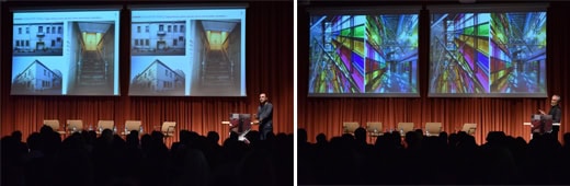 Mimar Kerem Erginoğlu, “Yaratıcılar Standart Mekân Sevmez” başlıklı konuşmasına “Neden yapıları dönüştürüyoruz?” sorusu ile başladı. 19. yüzyıl sonunda tarihlenen eski bir depo binası olan Tuz Ambarı ile 2000’li yılların başında AVM olarak açılmış ancak rekabet şartlarında hizmet dışı kalmış bir binanın yaratıcı endüstrilerdeki iki farklı firmanın ofisine dönüşmesi serüvenlerini aktardı.