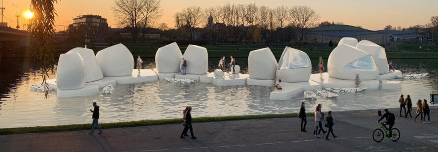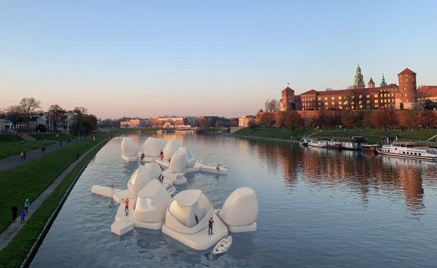 Salgın, nehrin kenarında bir yürüyüş için mimari tasarımlı bir arka plan, çarpıcı doğal çevre manzarasıyla mahremiyet sunan, düşük etkili bir uzaktan çalışma konseptine yol açtı. Vistula Nehri’ndeki Enclaves adı verilen bu yüzen bölmeler, Polonya, Kraków’daki Güzel Sanatlar Akademisi mezunu Agnieszka Białek’in düşünce ürünüdür. Fikir, hayatımızda eşi benzeri olmayan bir olayın sonucudur.