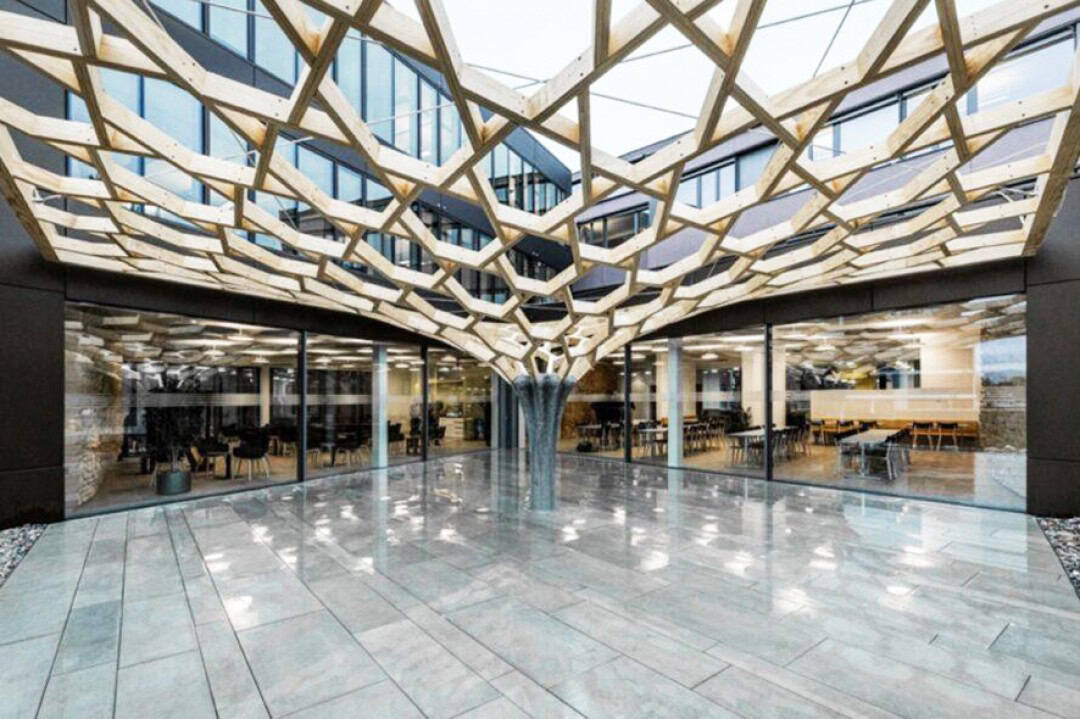 Gramazio Kohler Research ve ETH Zurich, tamamlanması 2 yıldan fazla süren projeleri Future Tree (Geleceğin Ağacı) ile robot inşasını bir sonraki aşamasına taşıyor. Basler & Hofmann’ın Esslingen, İsviçre’de yer alan ek ofis binasının avlusuna yerleştirilen ağaç biçimli kanopinin ayakta durmasını sağlayan öğeler birbirlerine ahşap parçalarla eklenirken kanopinin üstüne yerleştirilen parça ofis binasına ilintilenen betondan yekpare bir sütundan oluşuyor.