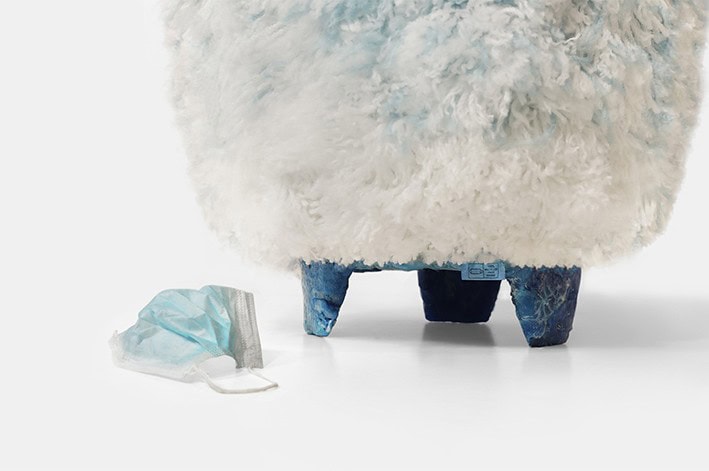 Yüz maskelerinden çıkarılan iplikler bükülerek yumuşak bir iplik haline getiriliyor. Daha sonra eritilerek, üç ayaklı bir taburenin üzerine monde ediliyor. Slatter’ın geri dönüştürülmüş taburesi, yalnızca yüz maskelerinin yumuşak, yoğun, destekleyici doğasını değil; aynı zamanda kirlilik gibi yıkıcı bir sorunla yüzleşmenin getirdiği güzelliği de vurguluyor.