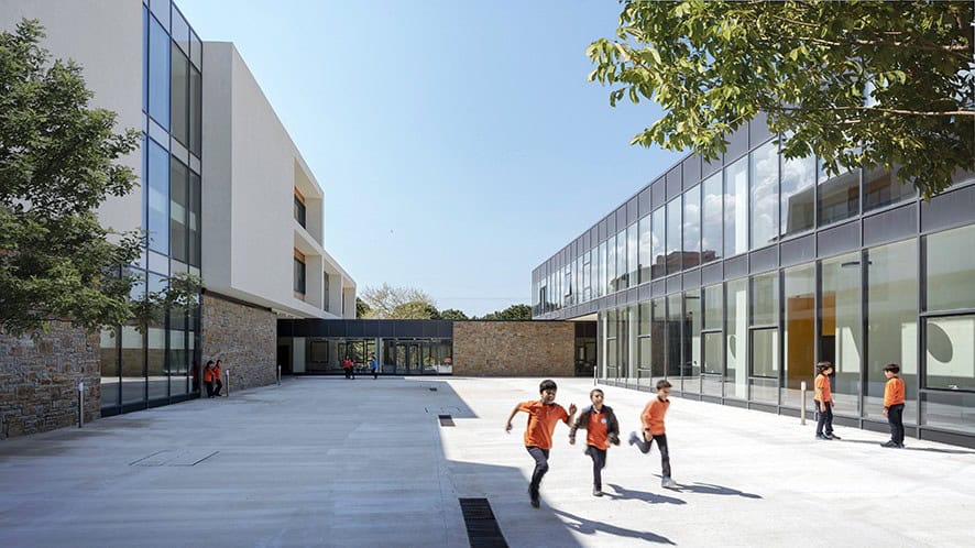 Öğrenim mekânlarının zemin katında yer alan resim, müzik derslikleri, laboratuvarlar, atölyeler gerek cadde gerekse yerleşke içerisindeki avlularla şeffaf ve geçirgen bir ilişki kurarak hem ada halkının bu öğrenim faaliyetleri ile etkileşime geçmesini hem de öğrencilerin çevrelerindeki sanatsal ve bilimsel faaliyetleri rahatça gözlemleyebilmesini amaçlar. Örneğin, caddede yürüyen bir adalı müzik dersliğinin taş duvar üzerinde dışarı açılan cephesinden müziği dinleyebilirken, meslek lisesi avlusundan geçen bir öğrenci ise yapılan resim çalışmalarını gözlemleyebilir. Şeffaf, geçirgen, erişilebilir, merak ve keşif duygusunu tetikleyen, katılımcı bir öğrenim ortamı kurulur. Yine zemin katta yer alan yemekhane ve kantin çift cepheden (hem cadde hem de avlulardan) kullanıma açılarak, hem öğrencilere hem de adalıya hizmet verir. Yerleşkeye ait donatılar adalının gündelik hayatının bir parçası olacak şekilde kurgulanarak, yerleşkenin çevreyi dönüştürecek bir katalizör olması amaçlanır.