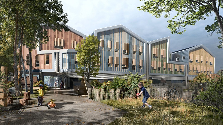 LINK Arkitektur, yerel iklim koşullarını ve zorlukları eğitim süreciyle bütünleştiren bir okul tasarıladı. İsveç Yakın Torslanda’da bulunan okul yılı boyunca her gün yağmur alan bir yerde konumlanıyor. Bu durumu ise öğrenme ve oyun için bir kaynak olarak ele alıyor.
