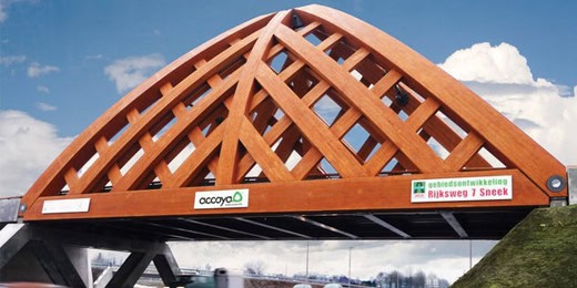 Ülkenin çevreci mimari listesine en son eklenen tasarım ise kayık formundaki ahşap otoyol köprüsü olan ‘Sneek’ köprüsüdür. Onix an d Achterbosch Architectuur (kısaca OAK) tarafından uzun süre dayanıklılığını kaybetmeyen Accoya ahşabı kullanılarak inşa edilen şehrin bu gözde köprüsü, gelen ziyaretçilerine sıcak bir hoşgeldin görüntüsü sunmaktadır. Yaklaşık 30.000 nüfuslu Sneek kıyı kasabasının deniz ile olan köklü bağını ve tarihini sembolize etmesi istenen köprünün formu ters dönmüş bir kayık şeklinde. OAK mimarları bu yaklaşımları ile açılan proje yarışmasında birinciliği elde ettiler ve kasabanın korunan tarihi sembollerinin yanında, yenilikçi bir sembole imza attılar.