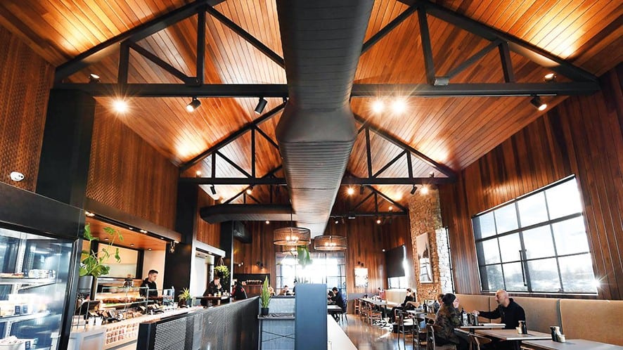 İç mimarlık şirketi Lukas Partners kafe için çağdaş, sıcak ve davetkâr bir iç mekan tasarlamış. Biyofilik tasarım prensiplerinin ve bu prensiplerin yarattığı duygusal etkinin bilincinde olan mimarlar mekânda Avustralya’ya özgü bir doğal yaşam alanı oluşturmaya çalışmışlar. Fındık ve okaliptüs tonlarından ilham alan mimarlar doğal malzemelere yoğunlaşmış. Tonozlu tavan termal işlem görmüş Amerikan lale ağacının geniş ölçüde kullanıldığı alanlardan biri. Bu zenginlik taş mutfak tezgâhı ile dengeleniyor. Evin ön kısmında, çelik kenarlı, kadife kaplama granit göze çarpıyor ve müdahale edilmemiş beton zemini dengeliyor.
