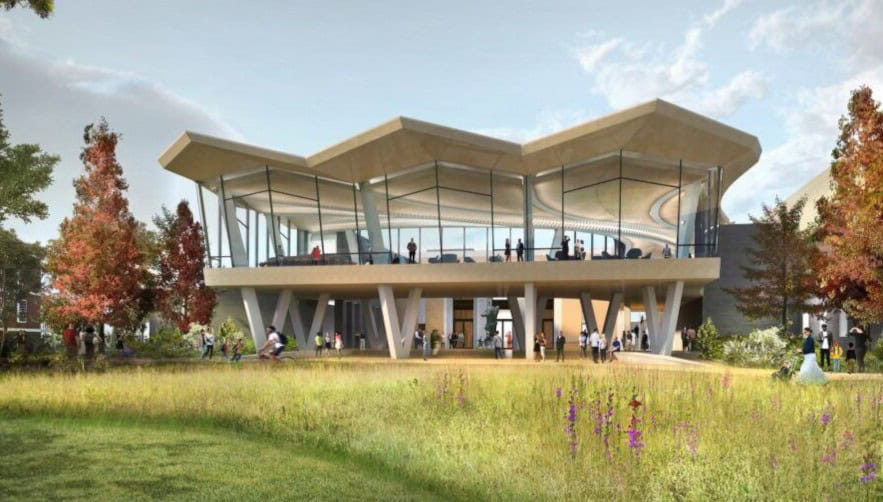Arkansas Güzel Sanatlar Müzesi’nin yeniden tasarımı ve genişletilmesi, yağmur suyunu çevreleyen yağmur bahçelerine yönlendirmek için tasarlanmış kıvrımlı şekillere sahip akıcı beton bir yapı olan imza çatısının tamamlanmasıyla bitiş çizgisine dev bir adım daha yaklaştı. Mayıs 2022’de açılış tarihi olan 133.000 metrekarelik proje, Studio Gang mimarları tarafından peyzaj mimarlığı firması SCAPE ile iş birliği içinde tasarlandı. Bir yağmur suyu yönetim planına ek olarak, eko-düşünceli tasarım, mevcut binaların en karbon yoğun unsurlarının uyarlanabilir şekilde yeniden kullanımını, yerli türlerin 11 dönümlük yeni peyzaja entegrasyonunu ve mevcut toprakların %90’ının korunmasını içerir.