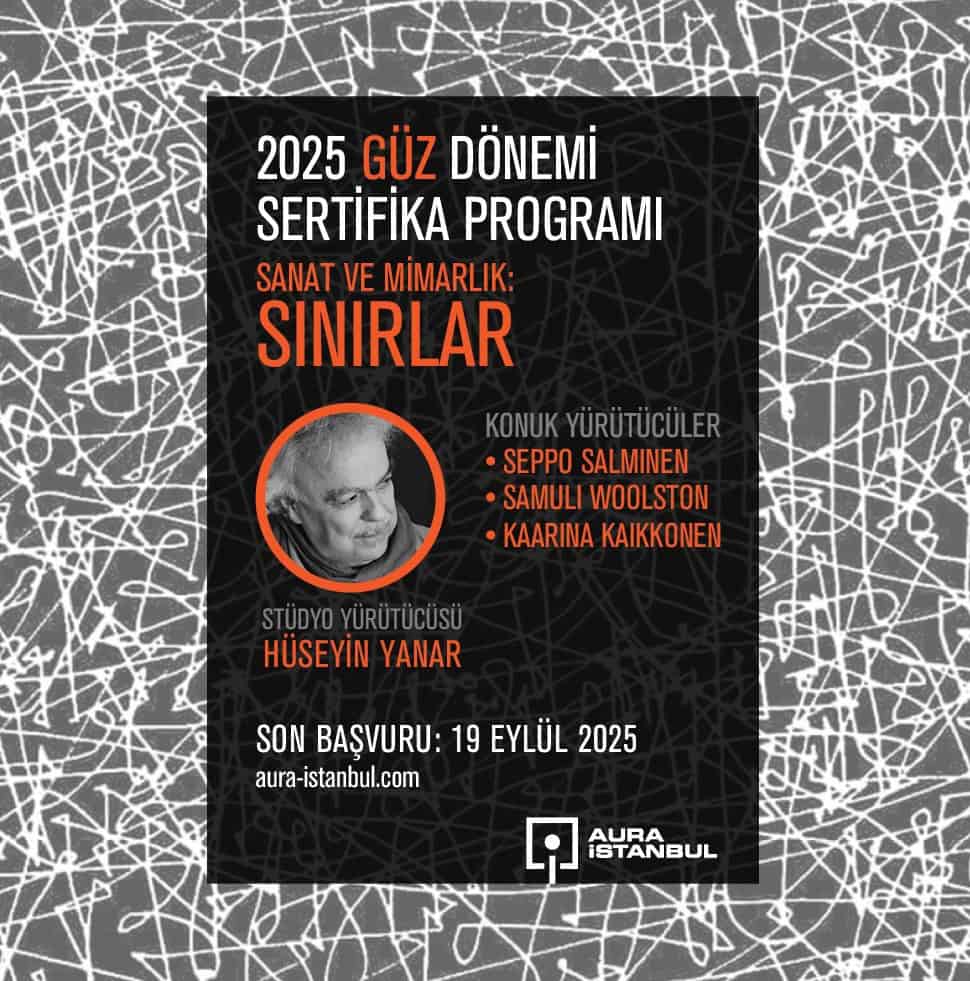 AURA İstanbul’un omurgasını oluşturan Araştırma Tabanlı Tasarım Stüdyosu, bu yıl “Sınırlar” teması etrafında şekillenecek. Finlandiya’da çalışmalarını sürdüren mimar, yazar ve akademisyen Hüseyin Yanar danışmanlığında yürütülecek stüdyoya, performans sanatçısı Seppo Salminen, ALA Architects’in kurucu ortağı Samuli Woolston ve çağdaş enstalasyon sanatçısı Kaarina Kaikkonen de konuk yürütücüler olarak katkı sağlayacak.