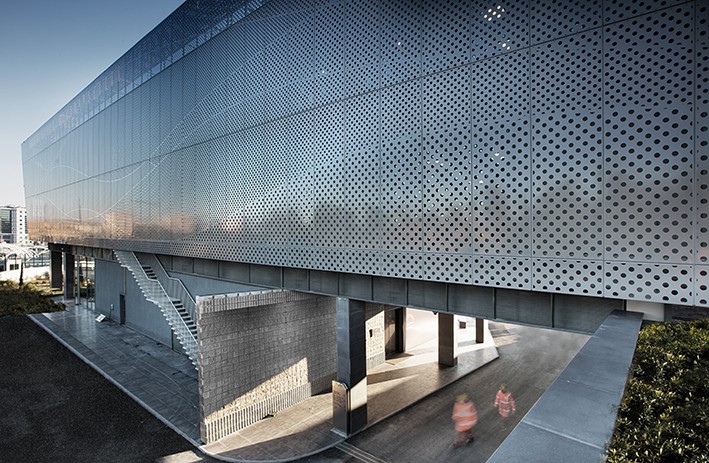 Merkezin yan cephelerinde yerden kopuk bir şekilde binayı saran perfore metal levhalar güneş kırıcı olarak işlevlendirilmiş. Cephe, çift cidarlı olma özelliğiyle enerjisini etkin kullanan bir yapıya kavuşarak sürdürülebilirlik teması çerçevesinde ön plana çıkarılmış. İklimsel koşullar düşünülerek kullanılan metal perforenin farklı boyutlarda tasarlanan delikli örüntü yapısıyla aynı zamanda kullanıcı deneyimi açısından da görsel konfor sağlanmış. Operasyon ve Bakım Merkezi’nin 24 saat çalışan bir yapı olması sebebiyle metal cephe ardında bulunan ofis pencereleri, var olan gece aydınlatmasına katkı sağlayarak aydınlatma tasarımını değişkenlik unsuru ile güçlendiren bir anlayış sunmuş.