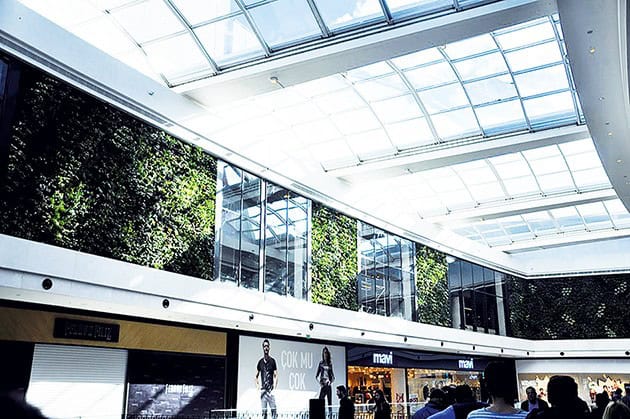 Bir boşluğun etrafında tekrarlanan zeminleriyle alışılagelmiş alışveriş merkezi mimarisinin aksine; dükkanlar, restoranlar ve eğlence alanlarını üç farklı temadan oluşan ana caddeden oluşturduk. Projede uygulanan ve yağmurlu günlerde bir kaç dakikada açılıp kapanabilen hareketli cam tavan sistemi ziyaretçilere yılın büyük bir kısmında açık havada alış veriş yapabilme imkanı tanıyor.