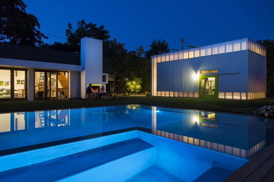 Koning Eizenberg Architects California’da bulunan küp şeklindeki bileşiklerden oluşan konut kompleksi Sobieski House’ı tamamladı. Dört kişilik bir aile için inşa edilen proje, oturma ve uyuma alanlarını içeren bir dizi katlanmış beyaz kutucuktan oluşurken yanmış ahşap kaplı duvarlar banyoları ve depolama alanlarını kapsamaktadır.
