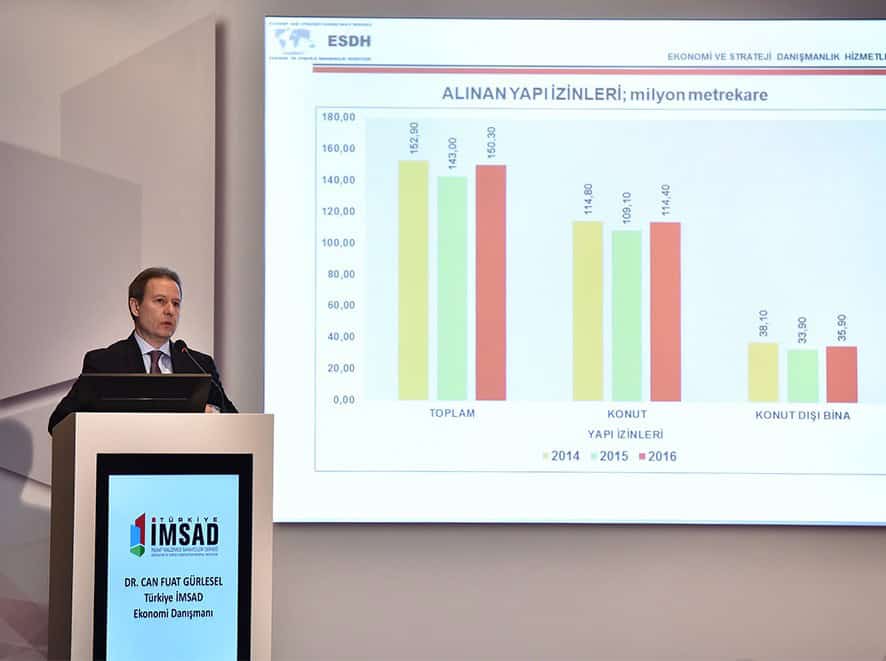Türkiye İMSAD Ekonomi Danışmanı Dr. Can Fuat Gürlesel, küresel ve Türkiye ekonomisine ilişkin değerlendirmelerde bulundu. Gürlesel, “Dünya ekonomisindeki büyümede yavaşlama ilk 4 ayda atlatılmış görünüyor. Kalıcı olacağı ümidi veren yüzde 2 civarında bir büyüme öngörülüyor” dedi. Gürlesel özetle şunları söyledi: “Türkiye ekonomisinde yılın ilk 3-4 ayında göreceli bir canlanma var. Bu canlanmada kamunun sağladığı destekler etkili olmuş görünüyor. Bunun sürdürülebilir olduğunu düşünmüyorum. Çünkü ciddi kamu harcaması söz konusu. Türkiye’de ekonomik iklimin normalleşmesi gerekiyor. Enflasyonda artış trendi var. Faizler aynı düzeyde devam etmesi bekleniyor. Türk Lirası’nda yıl sonuna kadar bir değerlenme beklemiyoruz. 2017’nin belirleyicisi yapı ruhsatları ve yapı izinleri olacak. Bu yıl umut verici görünüyor. Konut ruhsatlarında artış var. Yapı izinlerinde bütün zorluklara rağmen 2016 yılı küçük de olsa artışla tamamlandı. Yılın ilk 3 ayında hükümetin destekleriyle 325 bin yeni konut satışı var. Yeni konut satışı ise 145 bin. İnşaat Malzemeleri üretiminde yüzde 5.3 gerileme var. Bina inşaat maliyetleri son dönemde ciddi artış kaydetti. Fiyat artışı dışında bir dengeleme imkanı görünmüyor. İnşaat sektörü göreceli olarak diğer sektörlere göre daha yüksek bir performans gösterecek ancak bizi tatmin edecek bir düzeyde olacağını düşünmüyorum.”