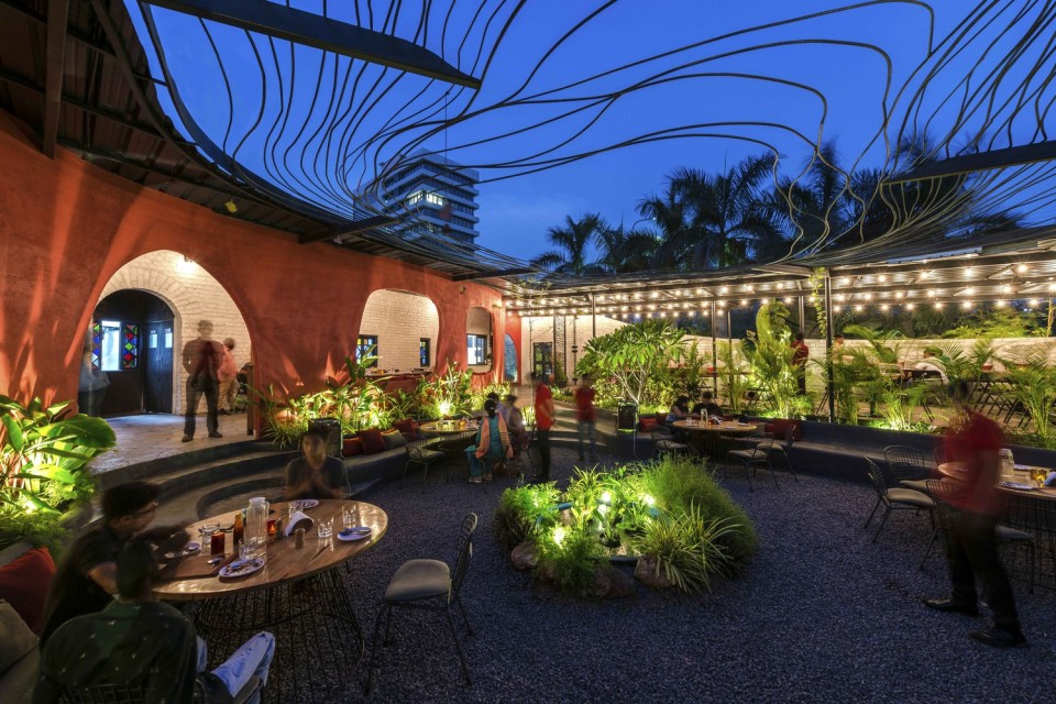 Hindistan Surat'da etrafı kapalı ve klimalı restoranlara alternatif, büyük açık alana sahip, mahremiyet ve sokak ile etkileşimin bir arada sunulduğu sıradışı bir restoran...