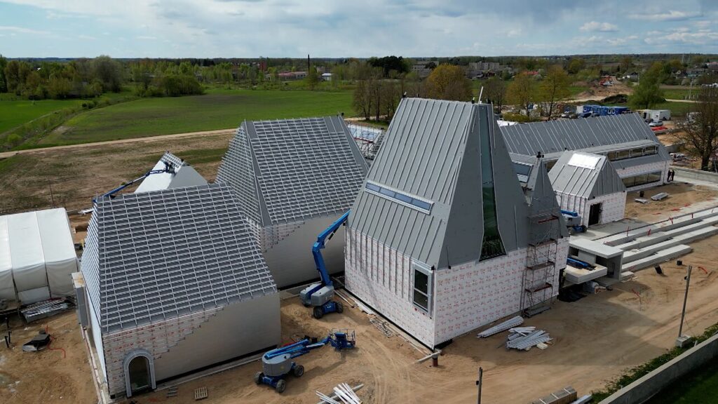 Litvanya’nın Šeduva kasabasında inşa edilmekte olan Lost Shtetl Yahudi Müzesi, anıtsal bir müze binası yerine küçük ölçekli yapıların bir araya geldiği bir yerleşim düzeni öneriyor. Tasarım, geçmişte bölgede var olan Yahudi kasabalarının mekânsal dokusunu mimari bir kurguya dönüştürerek ziyaretçiye farklı bir müze deneyimi sunmayı hedefliyor. Projede birbirine yakın konumlanan eğimli çatılı hacimler, uzaktan bakıldığında küçük bir köy siluetini andıran kümelenmiş bir yapı topluluğu oluşturuyor. Her bir yapı sergi alanlarının farklı bölümlerine ev sahipliği yaparken, hacimler arasındaki geçişler ziyaretçiyi bir yapıdan diğerine yönlendiren dar bağlantılar ve dolaşım yolları üzerinden kuruluyor. Böylece müze deneyimi tek bir galeri içinde ilerlemek yerine, bir yerleşim içinde dolaşma fikri üzerinden gelişiyor.