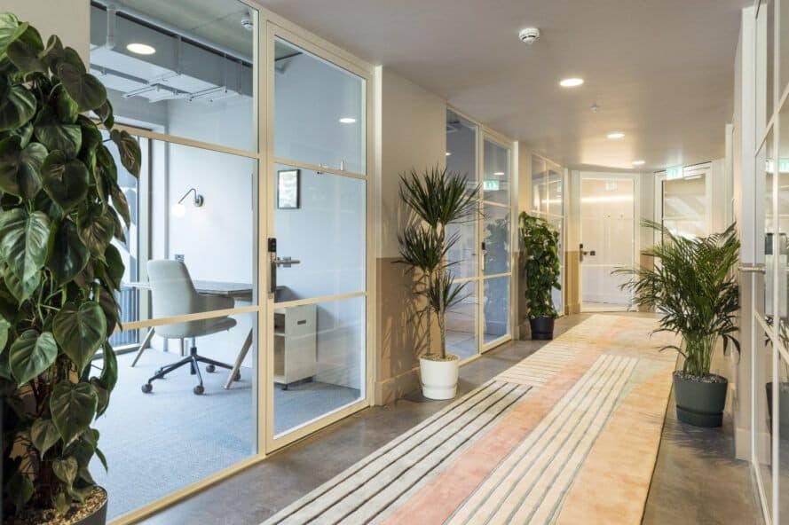 Yapıların ortak çalışma alanları da dahil olmak üzere iç mekanlar botanik yaşam unsurları içeriyor. Bu bitkiler iç mekanın hava kalitesini artırır ve tasarımın doğayla olan bağlantısını güçlendirir. Üç yapının merkez noktası olarak hizmet veren podyum bahçesinde, peyzaj yapıların isimlerini yansıtan ağaç türlerini (titrek kavak, kiraz ve huş ağacı) içerir. Bahçede ayrıca şehir ortamında biyoçeşitliliği artırmak için daha küçük çalılar ve ağaç çeşitleri de yer alır.