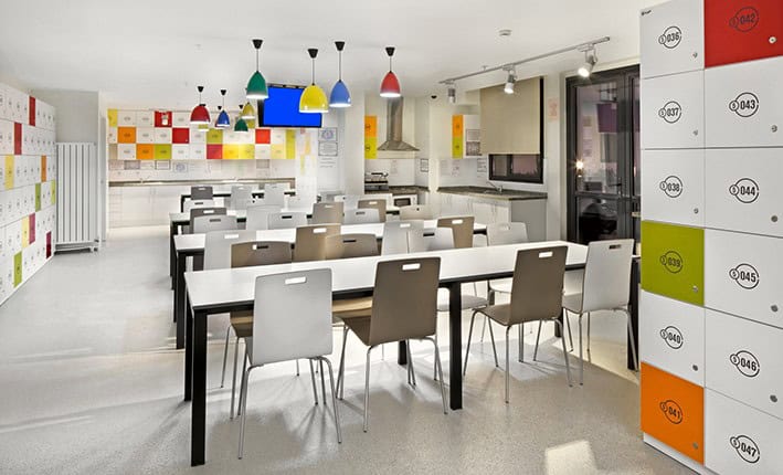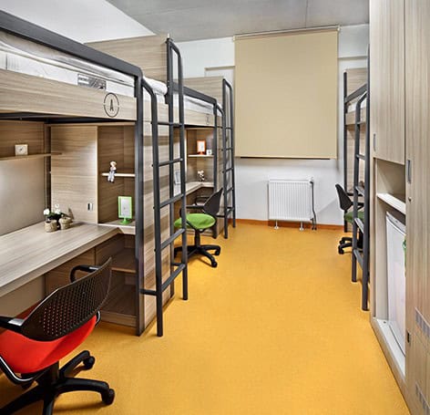 Bireysel veya grup olarak vakit geçirmeye olanak sağlayan sosyal hacimler, zemin ve yoğunluklu olarak da bodrum katta kurgulanmış. Fitness salonu, pilates odası, oyun odası, çok amaçlı salon, sinema ve müzik odalarında kullanılan malzeme, renk ve mobilyalar gençlerin keyifli ve rahat vakit geçirebilecekleri mekanlar oluşturabilecek şekilde seçilmiş. 2 ve 3 kişilik olarak planlanan odalarda ergonomik uygunluğu mokaplarla test edilen, altta çalışma masası, rafları ve dolapları; üstte yatak bölümü bulunan ve kişisel mahremiyeti sağlayan modüler olarak tasarlanmış. Engelliler için kurgulanan odalarda ise banyolar, mekan genişlikleri ve tüm mobilya ölçüleri kullanıcıya uygun olarak belirlenmiş.