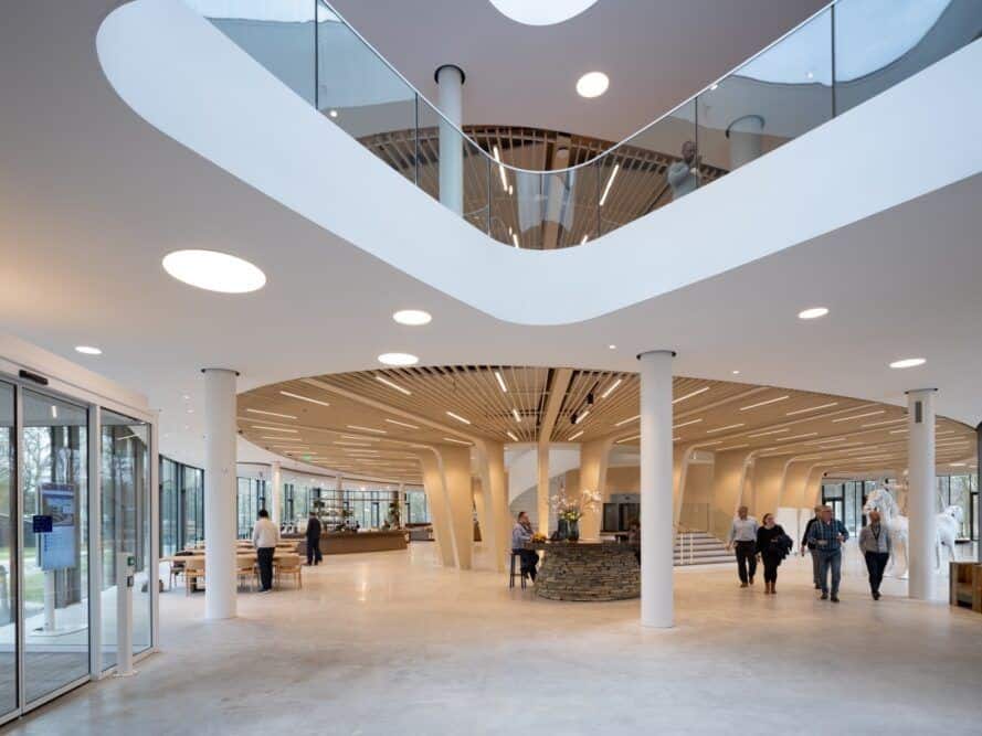 Triodos Bank geçen sene , sürdürülebilir mimari konusunda çıtayı yükselten, yeşil çatıya sahip, dairesel bir yapı olan yeni ofis binasını açtı. Amsterdam merkezli RAU Mimarlık firması tarafından, Hollandalı iç mimarlık firması Ex İçmimarlık ile iş birliği içinde tasarlandı. Zeist şehrindeki Triodos Bankası’nın yeni binası, ahşap malzeme ile organik formların uygulandığı ve her yerde zeminden tavana cam içeren yüksek, ışık dolu iç mekânlara sahip, bir katedral görünümünde.