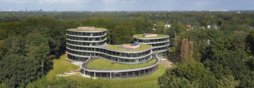 BREEAM’in Olağanüstü derecesinde sertifikasını almaya hak kazanan ofis yapısı, enerji tasarruflu bir özelliğe sahip. Ayrıca tasarımda, kullanılan yapı malzemelerinin değer kaybı olmadan sökülebileceği, başka bir yere taşınabileceği ve yeniden monte edilebileceğini sağlayacak stratejiler izlenmiş. De Reehorst arazisinde, ormanlık bir alanda yer alan beş katlı ofis yapısı, zemin, birinci ve ikinci katlara spiral merdivenlerle bağlanan, tavan aydınlatmalı, tam yükseklikte camla sarılmış üç yuvarlak kuleden oluşuyor. Mimarlara göre organik kompozisyon, doğadan ve yarasaların uçuş yollarından ilham almış.