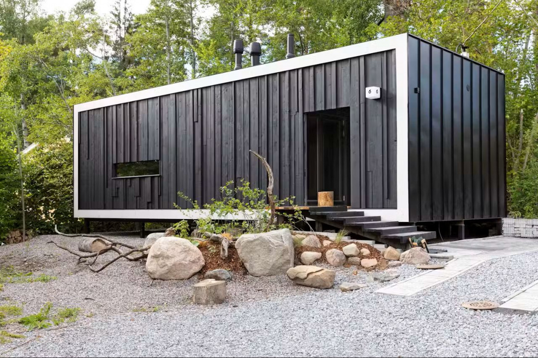 Yapının içine gelirsek… Shadow’un planı gerçek bir minimalizm örneği. Geniş ana hacim, çalışma, uyku ve oturma işlevlerini bir arada sunuyor. Ayrı tutulan özel alanlar banyo, küçük uyku odaları ve saunadan oluşmakta. Bu yaklaşım, hem yerden tasarruf sağlıyor hem de yaşam alışkanlıklarını sadeleştiriyor.
