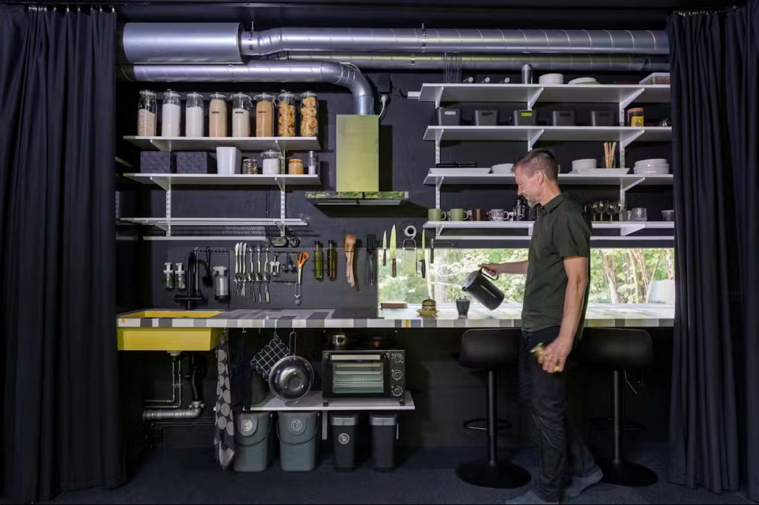 Yaklaşık 34 metrekarelik bu tiny house’un malzemelerinin yarısından fazlası ya geri dönüştürülmüş ya da doğrudan yeniden kullanılmış. Yani Shadow, sıradan bir evin karbon ayak izinin yarısından bile daha düşük bir etkiye sahip. Dahası, klasik bir evin tükettiği malzemenin sadece beşte biriyle ortaya çıkarılmış. Gerçek bir doğa dostu…