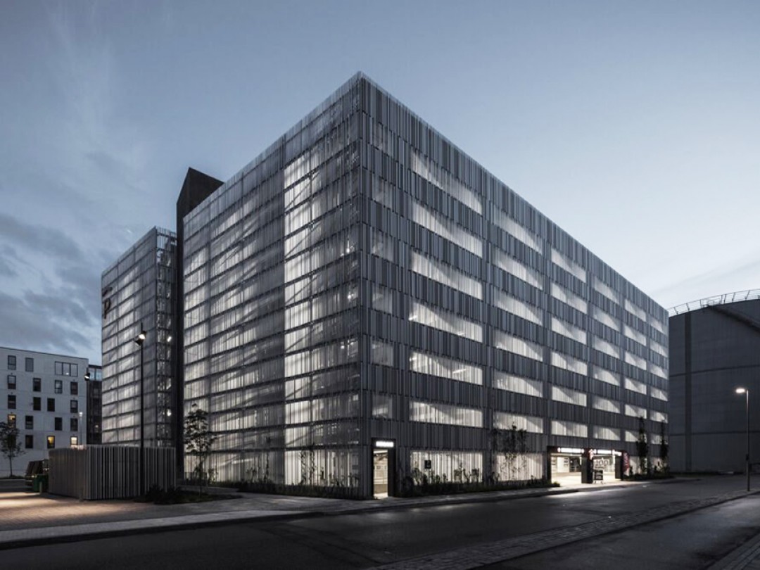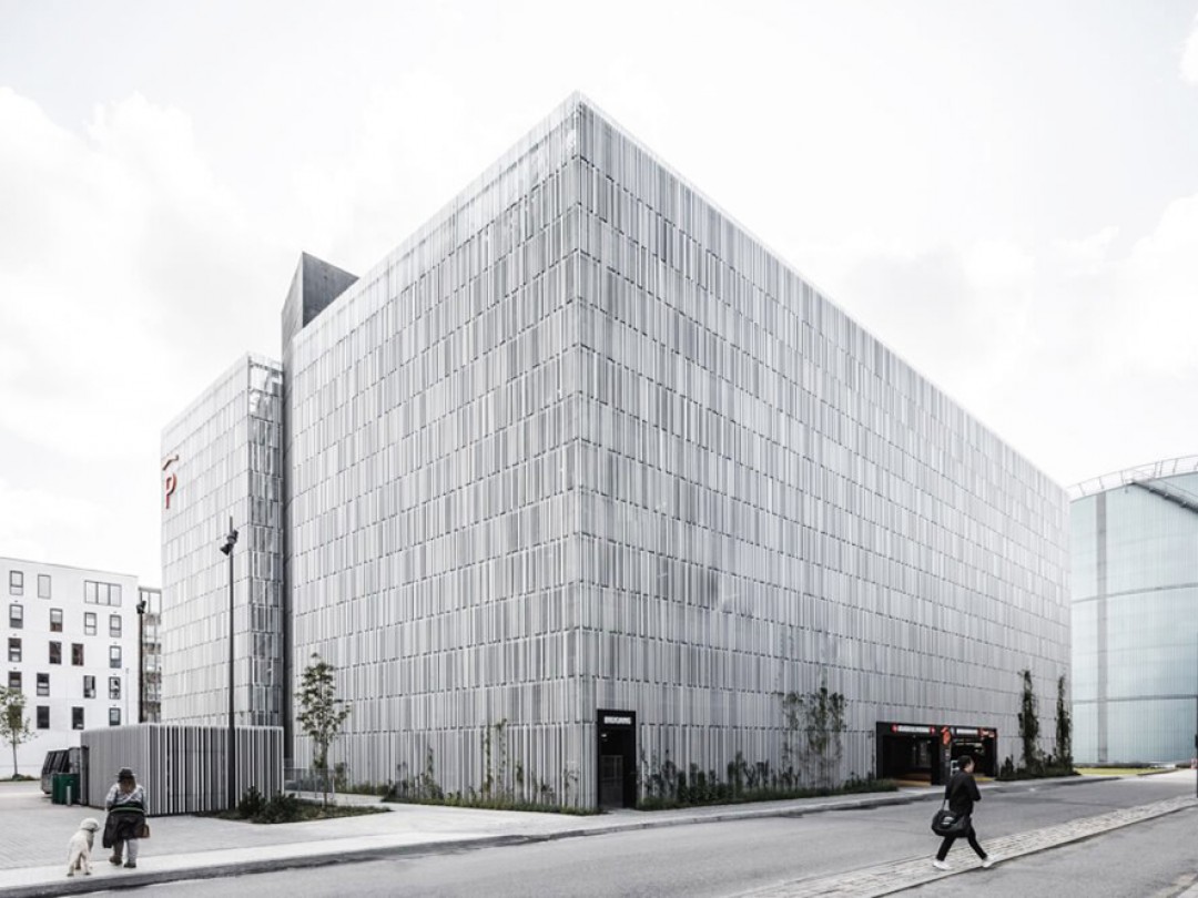 Kopenhag merkezli mimarlık firması Sangberg, Danimarka’nın dördüncü en büyük şehri Aalborg’da, park alanlarından çok daha fazlasını ve oldukça basitmiş gibi görünen bir garaj tasarladı. Park Evi G2 olarak adlandırılan monolitik bina, nasıl ve nereden bakıldığına bağlı olarak farklı şekillerde “kendini canlandırabilen” dinamik ve hafif ekstrüde alüminyum çıtalara sahip. Bu eğlenceli grafik cephenin alüminyum çıtaları da, yeniden kullanılabilirlik göz önünde bulundurularak tasarlanmış ve kuşlarla böcekler için yaşam alanının genişlemesini teşvik etmek için dizayn edilmiş.