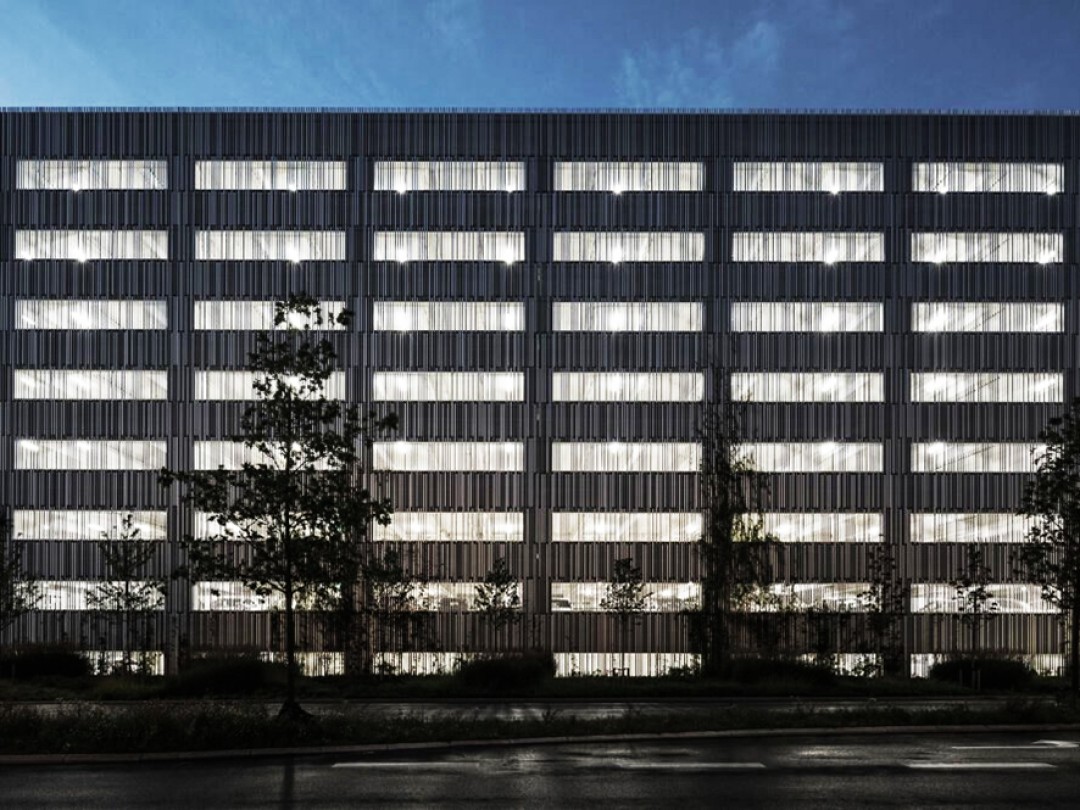 İki seneden fazla zamanda tamamlanan 15,200 metrekare genişliğindeki binada 590 adet park yeri var. Alüminyum cephe kolayca demonte edilip, başka bina projelerinde yeniden kullanılabiliyor. Kompakt yapısı, sürdürülebilir tasarımı ve eğlenceli dış cephesi sayesinde proje Aalborg Belediye bina ödülünü almış.