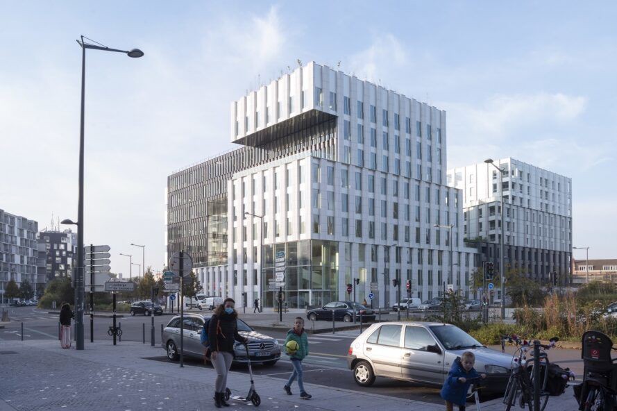 Fransa’nın Lille şehrinde bulunan Porte de Valenciennes semtindeki Partenord Habitat arazisi, çevre kirliliğine yol açan işe gidiş geliş fikrini ortadan kaldırıyor. Bu tasarımda, ofis alanı, konut ve perakende alanlarının tümü tek bir alana entegre edilmiş.