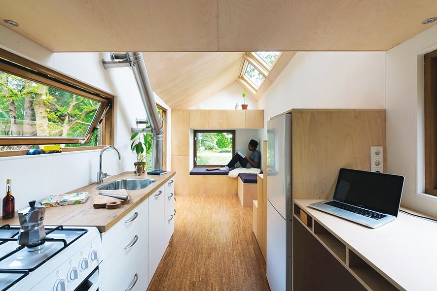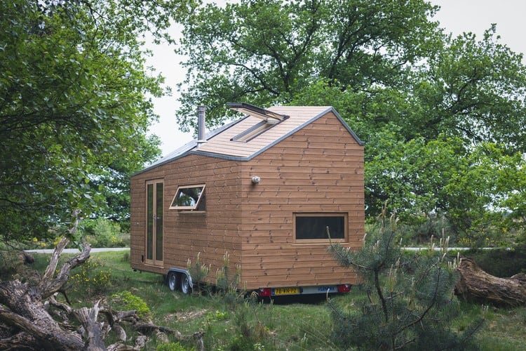 Walden Studio’nun tasarımı olan bu küçük ev sürdürülebilirlik ile şık tasarımı birleştirmeyi başarmış. Walden Studio, Hollanda’lı Marjolein Jonker için tasarladığı bu 17 metrekarelik evi bir römorka monte etmiş. Kompakt boyutlardaki bu ev çok fonksiyonlu bir tasarıma sahip. Eve giriş cam kapı ile sağlanıyor. İçeriye girildiğinde sizi bir köşe kanepe karşılıyor ancak bu kanepe hem depolama alanı hemde gerektiğinde dört kişilik bir yemek masasına dönüşüyor. Evin ortasında bir mutfak, merdivenler ve bir masa konumlanıyor. Merdivenler aynı zamanda dolap işlevini görüyor.