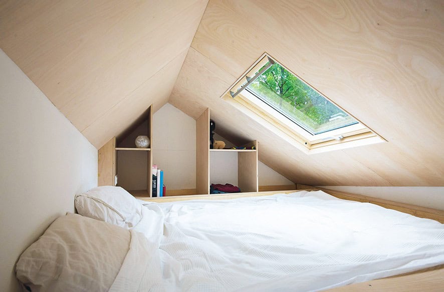 Evin en belirleyici özelliği; dört adet çatı penceresinin evin içine aldığı yoğun gün ışığı. Küçük boyutlu bu ev tüm kısıtlamalara rağmen geniş ve aydınlık hissi veriyor. Tasarımda açık renklerin kullanılmış olması bu hissi daha da güçlendiriyor.
