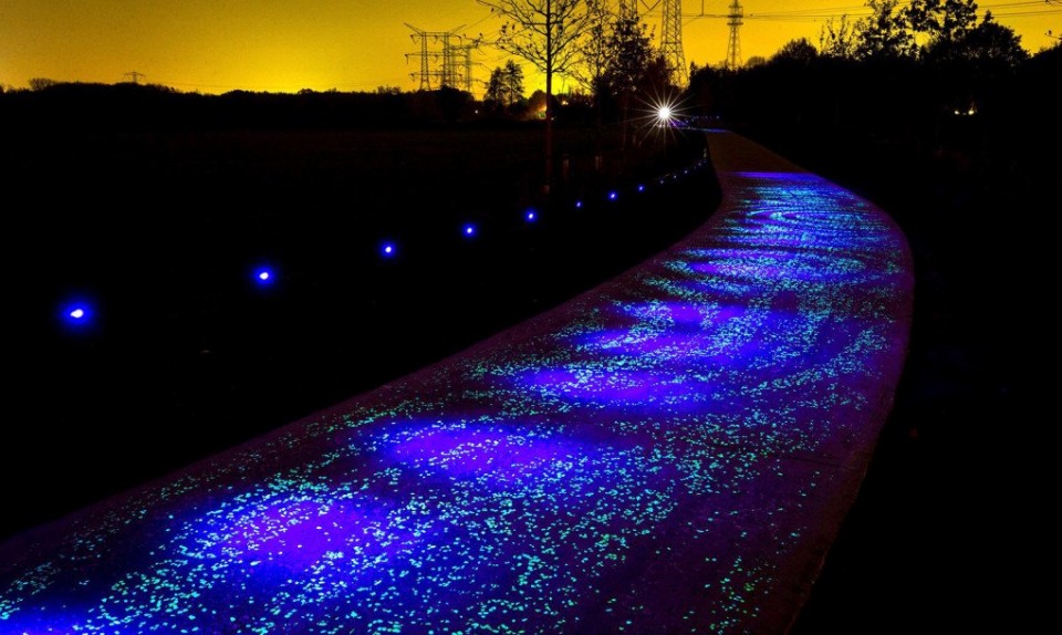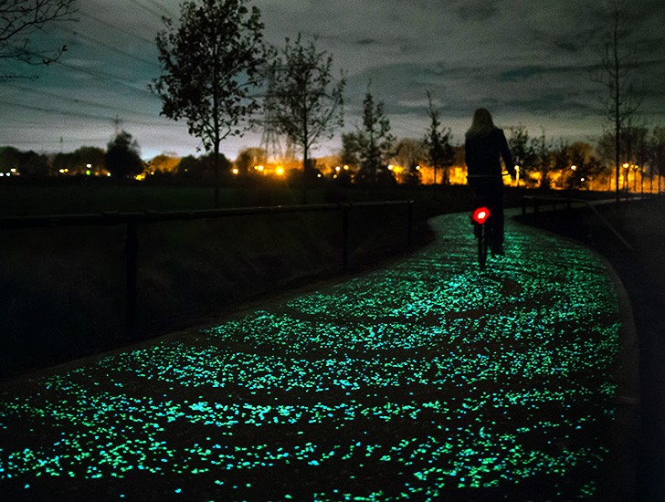 etkileşime giren; ışık, enerji ve bilgileri kullanan akıllı yollar yapmak. Stüdyo Roosegaarde tasarımcılarının Vincent Van Gogh’un ‘Yıldızlı Gece’ adlı eserinden esinlenerek tasarladığı bu bisiklet yolu Hollanda’nın Noord Brabant eyaletinde bulunuyor. Yol güneş enerjili LED’ler ile aydınlatılıyor. Gün boyu güneş enerjisi ile şarj edilen LED’ler gece boyunca parlıyor. Olağanüstü bir zihin ürünü olan bu proje LED ışıklandırmaları sayesinde yeryüzünde bir gökyüzü oluşturuyor.