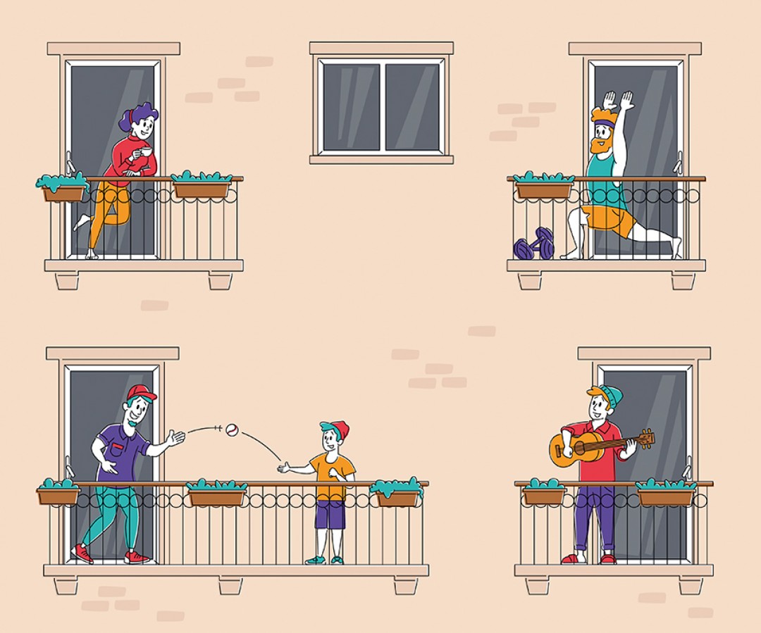 Komşular birbirlerine destek olmak ve moral depolamak için birlikte şarkı söyleyip dans ederken, sanatçıların doğaçlama performanslarının yeni sahnesi yine balkonlar oldu. Hatta komşular ile yapılan spor aktiviteleri balkonları daha da şenlendirdi. Bu sayede insanlar kendi evlerinin güvenli ortamından uzaklaşmadan sosyalleşmenin tadını çıkardılar.