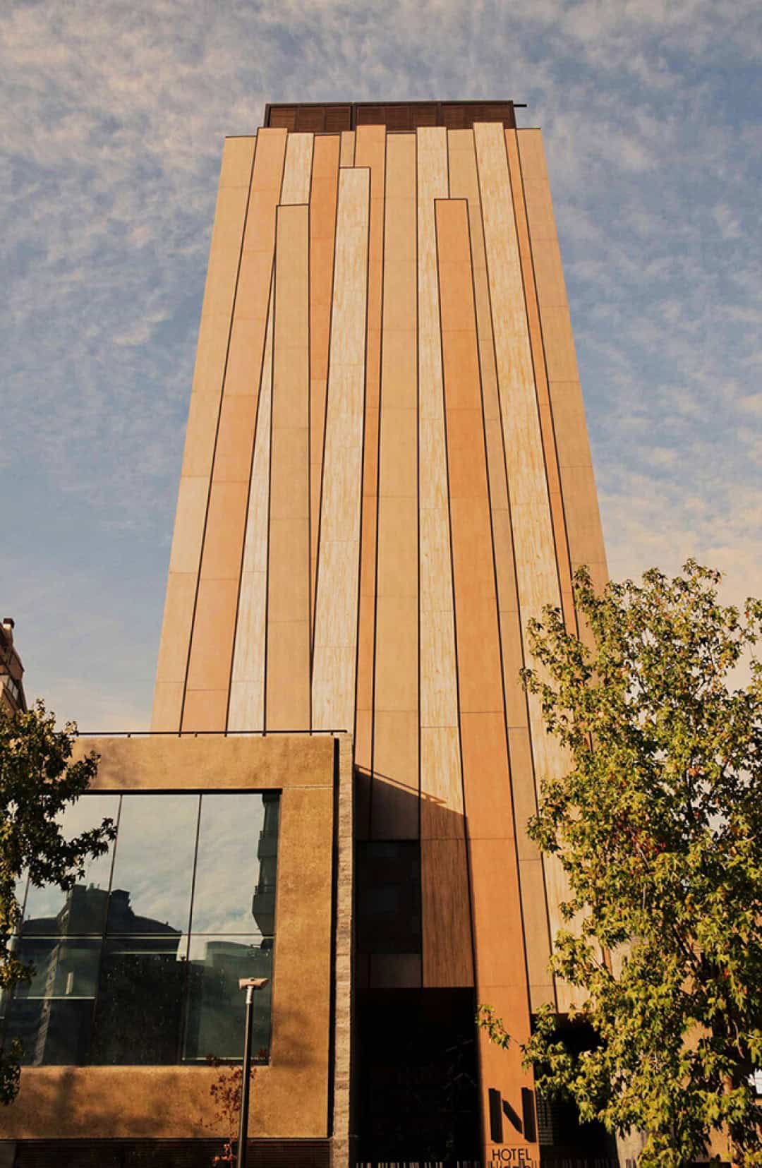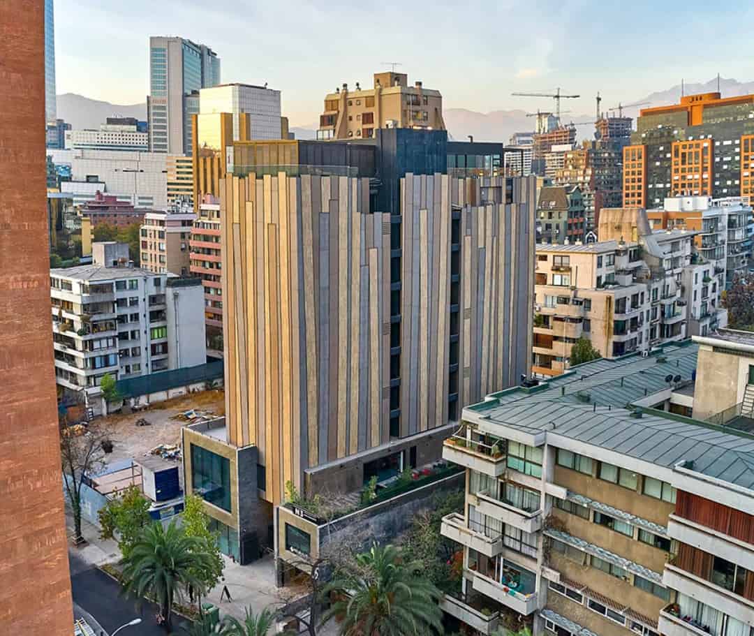 Şili’nin başkentinde hissedilen hava kirliliği ile mücadele etme kapsamında mimar Ricard Stein yeni projesi Hotel Nodo’nun cephesine bioaktif Laminam paneller yerleştirerek yapının sadece simgesel anlamda değil fonksiyonel açıdan da havayı temizleyen bir orman gibi işlev görmesini sağlıyor.