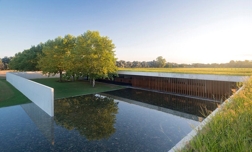 Polo alanındaki çim sahasının kusursuz nizamına karşın çatılar yabani otlarla örtülmüştür. Yaşam, saflık ve uyumun evrensel sembolü olan su bu mekanları birbirine bağlayıp, tanıtmak ve sakin bir atmosfer oluşturmak için tercih edilmiş. Bu projeyi tamamlamak için kullanılan iki temel malzeme beton ve sert ağaç; estetik özellikleri, kolay bakımları ile uzun yıllar dayanıklı olmaları sebebiyle tercih edildi.