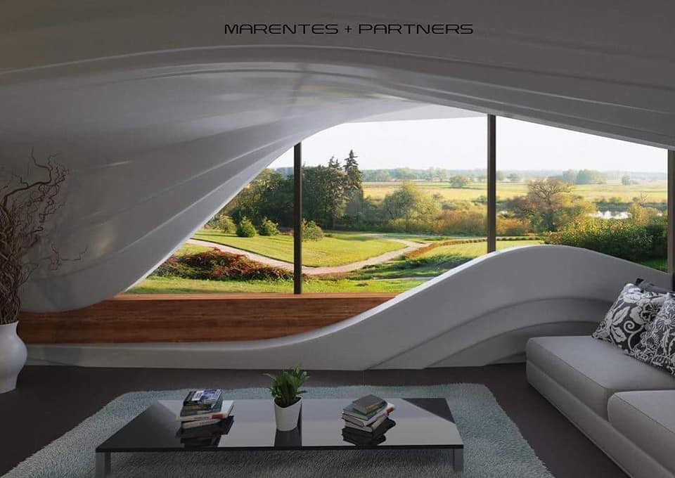 Bu projenin en ilginç özelliklerinden biri, mimarinin büyük ölçüde çevreyle bütünleşmesine izin verilmesi, konutun yeryüzünde yer değiştirmemesi idi. Böylelikle yapıda çözüm, arazinin topoğrafyasını izliyor ve mimari manzaradan doğacaktı.