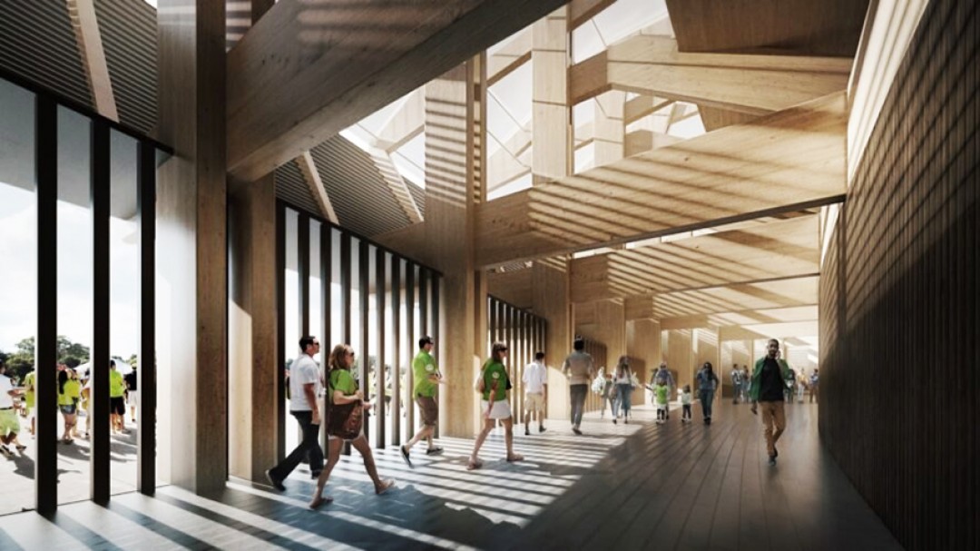 Yıllar süren gecikmelerden sonra Zaha Hadid Architects, sonunda Gloucestershire, İngiltere’de, Forest Green Rovers futbol kulübünün yeni yeri olarak hizmet verecek olan dünyanın keresteden inşa edilmiş ilk futbol stadyumu olan Eco Park Stadyumu için planlama onayı aldı. Sürdürülebilirliğin bir işareti olarak, yapı karbon nötr veya karbon negatif olmayı hedefleyecek ve yenilenebilir enerji sistemlerinin yanı sıra düşük karbonlu inşaat yöntemleri ve operasyonel süreçleri içerecek.