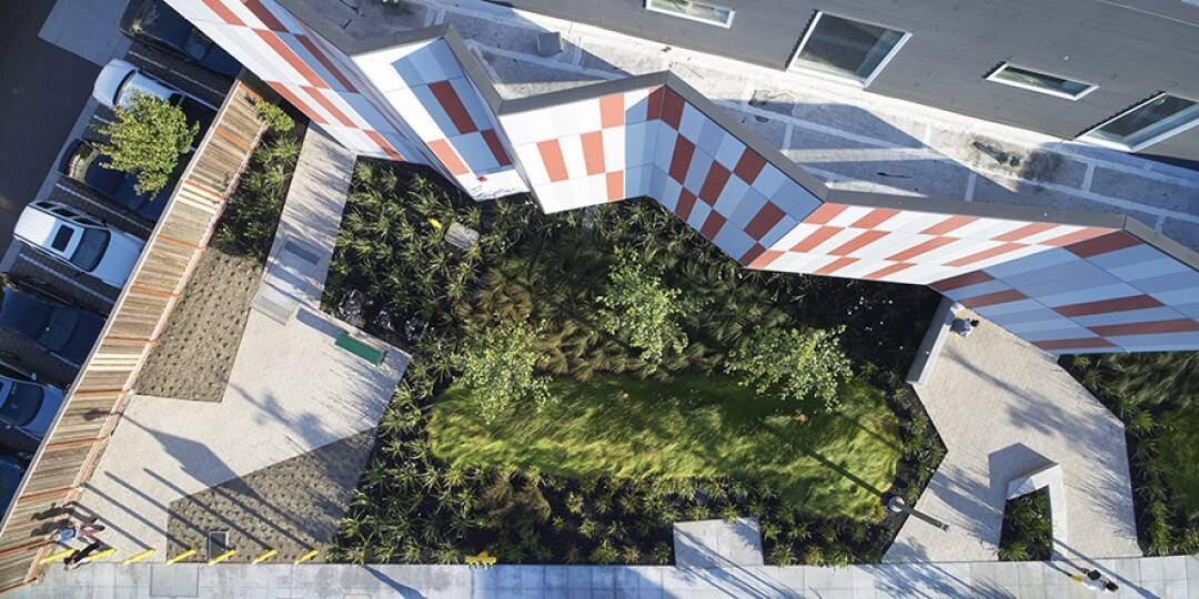 Şu anda teknolojik bir kent merkezi olan yerleşim alanı, bir zamanlar bataklıkların, meşe ağaçlarının ve otlakların yer aldığı bir ekosistemin parçasıymış. Proje bu kayıp doğal alanın izinden giderek çam ağaçlarına ve yöreye özgü bitki örtüsüne yeniden hayat veriyor. Ayrıca yağmur suyunu toplayıp, işleyen biyo-filtreleme bahçelerine ev sahipliği yapıyor.