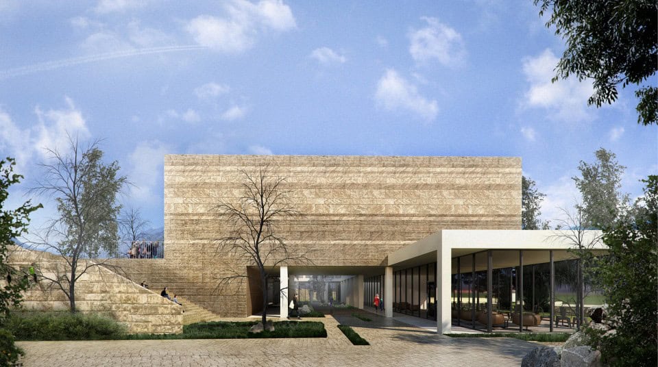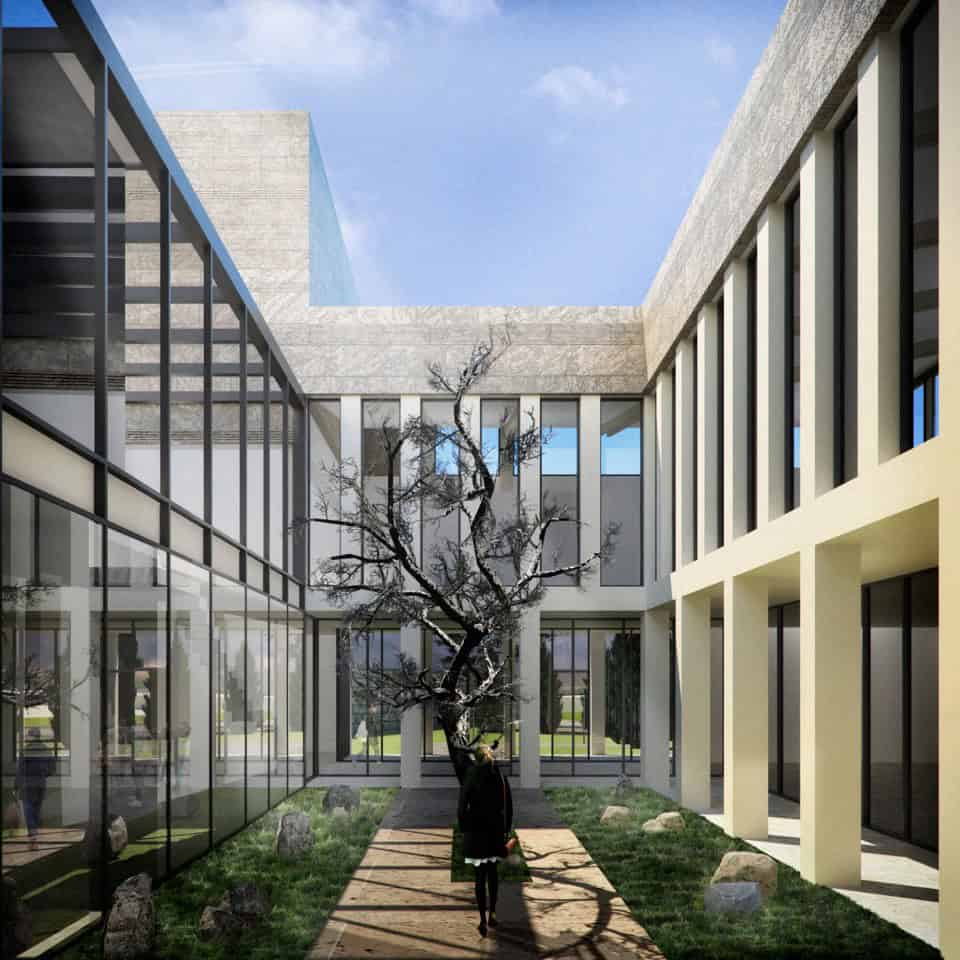 Yeşille entegre iç avlu ziyaretçilerine konforlu dinlenme, bekleme ve etkinlik alanları sunarken içe dönük kullanımı zenginleştirmiş. Yapının genelinde kullanılan doğal taş malzeme, yerel dokudan referans alarak yapıyı çevresiyle uyumlu hale getiriyor ve ışıkla kurduğu ilişkilerle zengin detaylar sunuyor.
