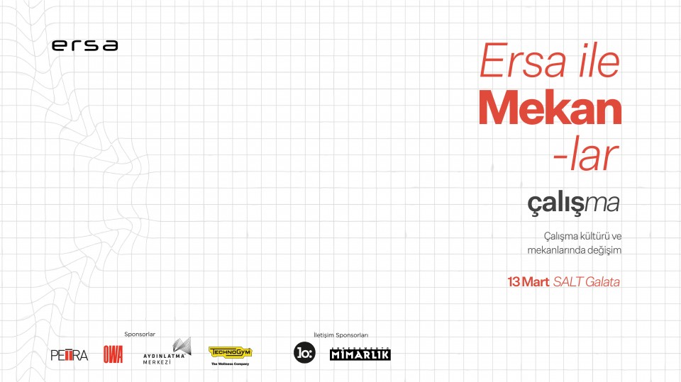 Ofisler, ortak çalışma alanları, paylaşımlı ofisler, evler, kafeler derken; çalışma mekanları adeta evrim geçirdi. Bu değişime teknoloji ve kuşak farklılıklarının da eklenmesi, yeni çalışma kültürleri yarattı. Bugün nerede, nasıl çalışıyoruz? Yarının çalışma mekanları nasıl şekillenecek? Tüm bu sorular ve daha fazlası “Ersa ile Mekanlar: Çalışma” başlıklı etkinlikte tartışılacak.