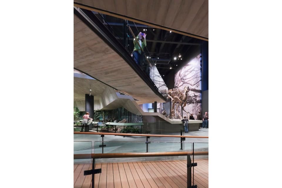 Müzenin kalbi, altı metre yüksekliğindeki merkezi bir kamusal alan yapıyı ampirik bir kanat ve yorumlayıcı bir kanala programsal olarak böler. Kuzey kanadı içindeki mekânlar resmi bilimsel keşif ve dünyamızın nesnel bir anlayışını destekler; Güney kanadı evleri, yeryüzündeki hayatın hassas dengesini ve doğal tarihini araştıran sergiler.