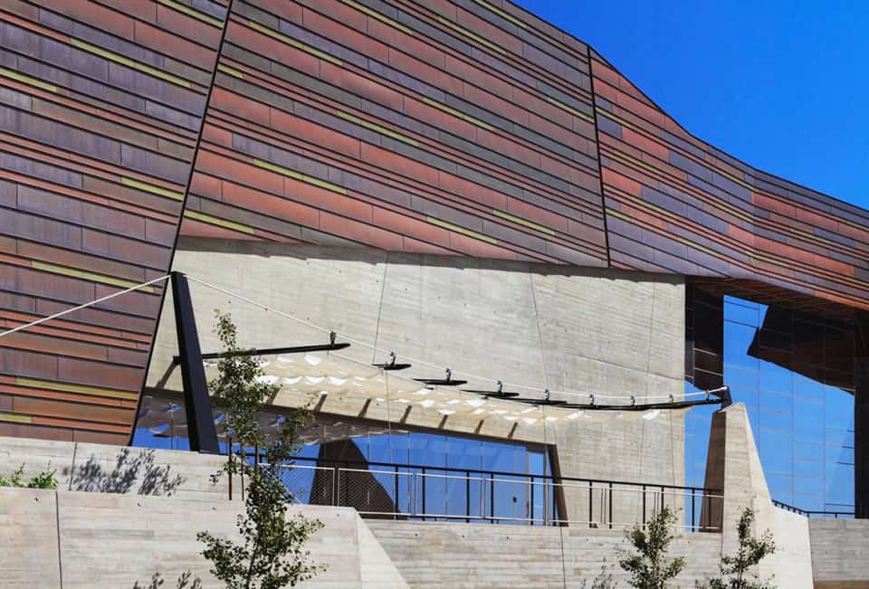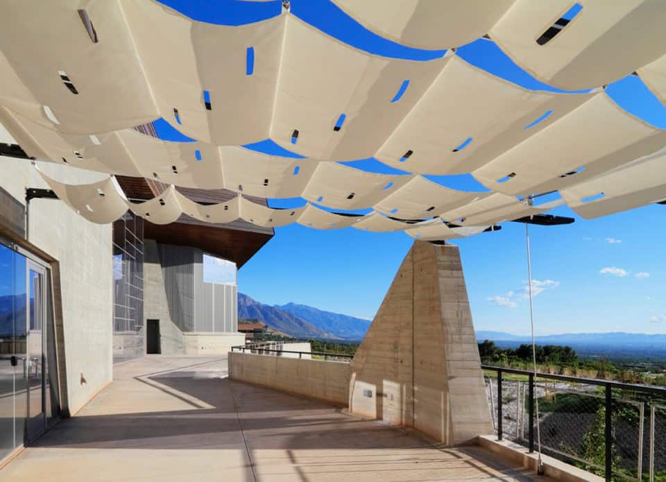 Üssünde Levha-biçimlendirilmiş beton, dünyadan insana geçişi işaret eder. Binanın cephe yüzeyini oluşturan bakır ve bakır-çinko alaşımlı paneller Utah’ın jeolojik ve mineralojik tarihini hatırlatır.