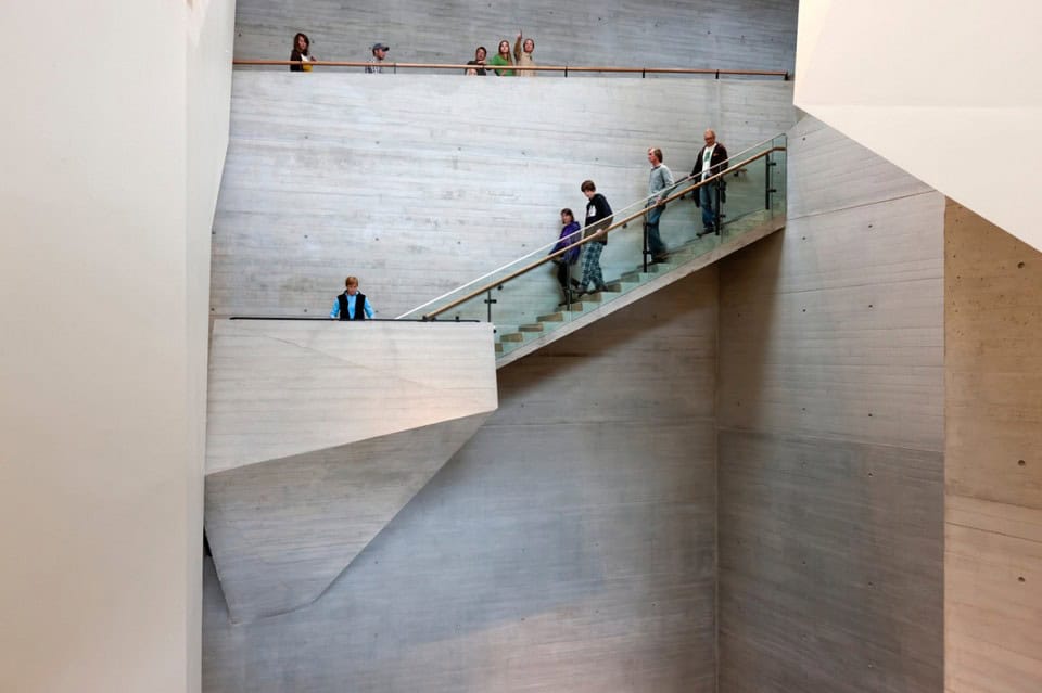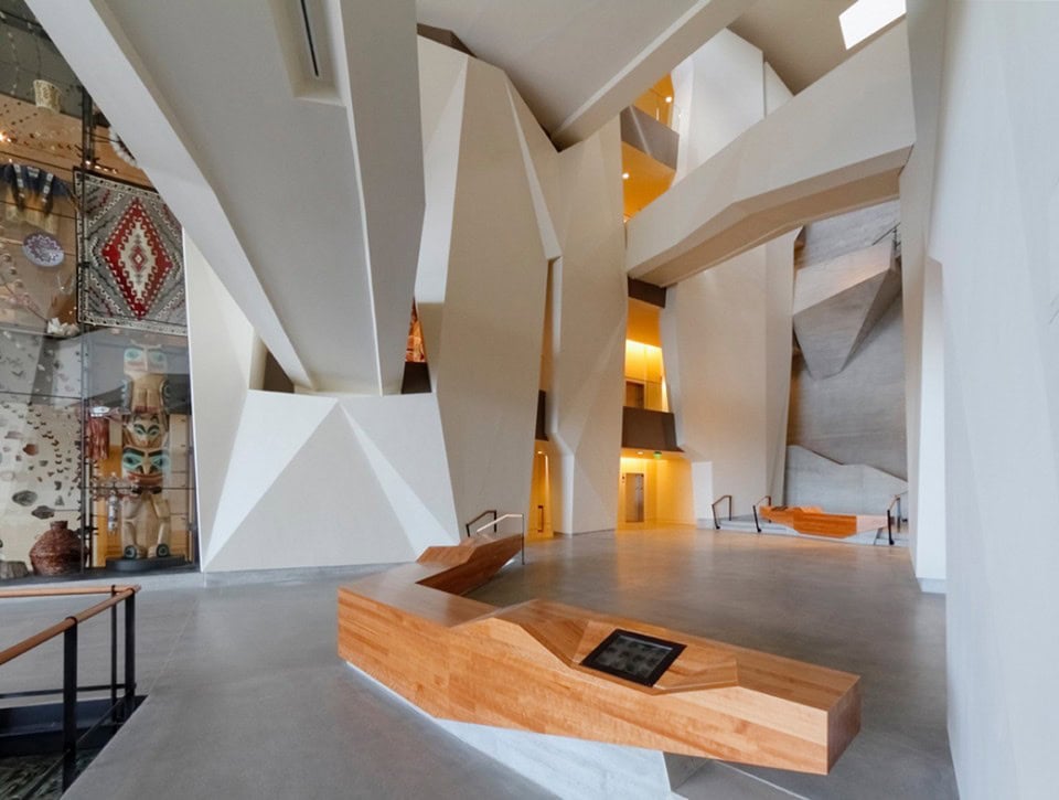 Kanyonda köprüler ve dikey dolaşım ziyaretçi sırasını düzenler; havza boyunca güneye bakan manzara müze ziyaretçiliğini genişletir; güneş ışığının şaftları apex’e nüfuz eder; ve büyük dikey ölçekte yükselmeler ve ilham verir.