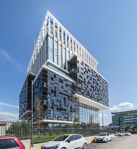 Tago Architects’in müşterilerinin beklentilerine uygun, prestijli bir merkez ofis olarak ele aldığı ve mimari tasarım ile yenilenebilir enerji sistemlerini birbirine entegre bir şekilde uyguladığı EWE & Bursagaz Merkez Ofisi’nde, ofis yaşamı ve doğa dostu enerji sistemleri arasında pozitif bir bağ kurulmuş. Farklı boşluklu prizmaları transparan yüzeylerle buluşturarak büyük, birleşik bir küp izlenimi sunulan yapıda, her prizmatik kütle ofis çalışanlarına yönelik açık bir terasla bütünleştirilmiş. Çalışanlara sosyalleşme fırsatı sağlayan alanların ofis mekanlarına entegre edilmesine özen gösteren Tago Architects, teras çatının güneş panellerinin yarattığı gölgeleme unsuruyla birlikte sofistike bir açık alan deneyimi yaşatmasını sağlamış.