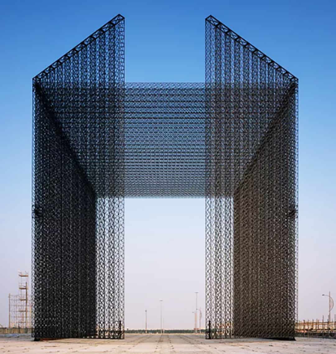 Üç portal tamamen yüksek yapısal mukavemet sunan ultra hafif karbon fiber kompozit ipliklerden dokunmuş. Aslında, bu sayede her kapı ek destek olmadan 21 m yükseklikte ve 30 m uzunluğunda durabiliyor. Her bir portalda 21 metre yüksekliğinde ve 10.5 metre genişliğinde iki büyük kapı var- bu kapılar her sabah açılacak ve expo 2020 için dünyayı ağırlayacak. Üç kapı fırsat, mobilite ve sürdürülebilirliği temsil ediyor; kapılardan geçtikten sonra yine Asif Khan ile işbirliği içinde tasarlanan avlulara çıkıyorsunuz.