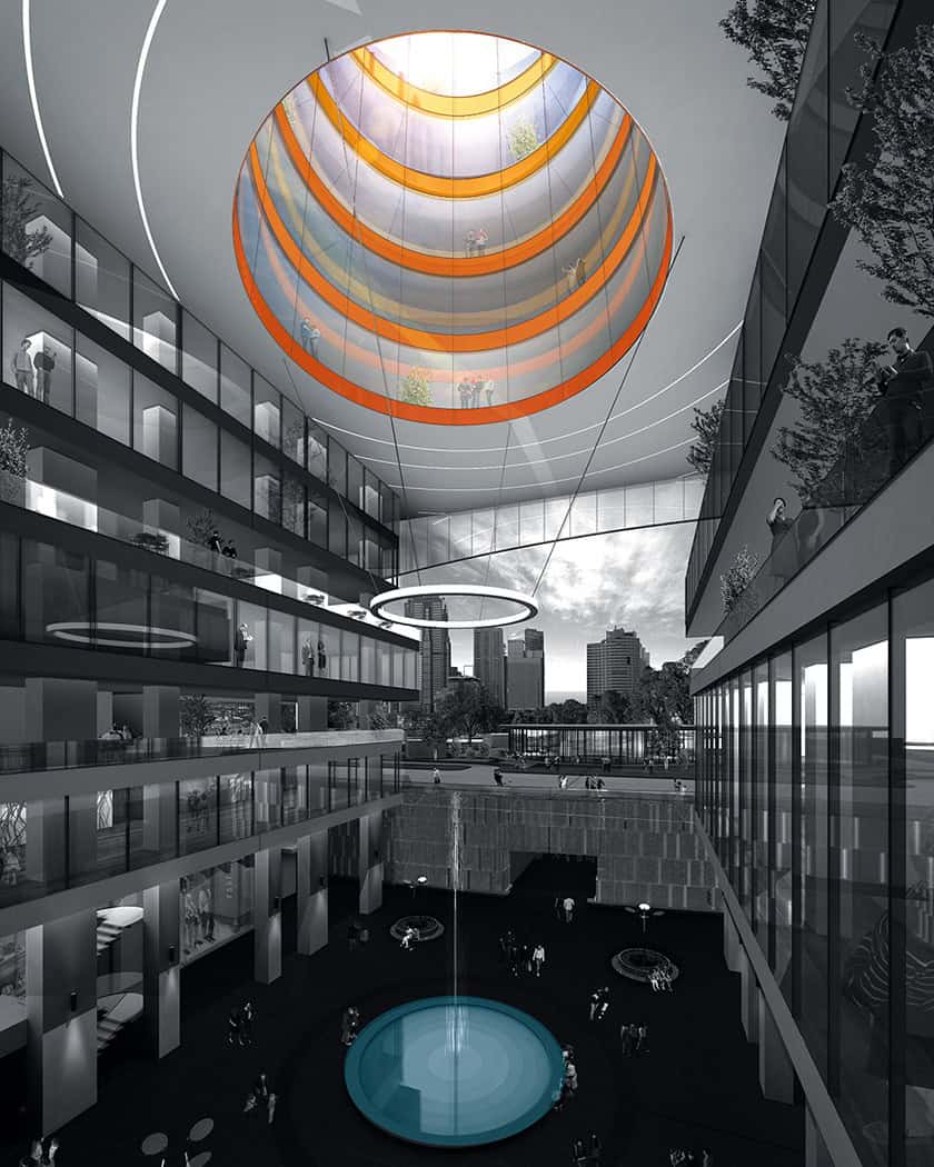 Kentsel Plaza, çepere yerleştirilen yapıların arasında, her yönden yapılara ve arsanın güneyindeki parka ulaşımın sağlandığı, farklı kotlarda avlular ve bu avluları bağlayan sokakların açıldığı, insanlara farklı alternatif yürüyüş yolları, vistalar, platformlar, çekim noktaları sunarak, Metro-Ankaray istasyonları ile ticari alanlar, kafeler, restoranlar, ofis girişleri, peyzaj alanlarını birbirine bağlayan, sosyal bir kent mekânıdır.