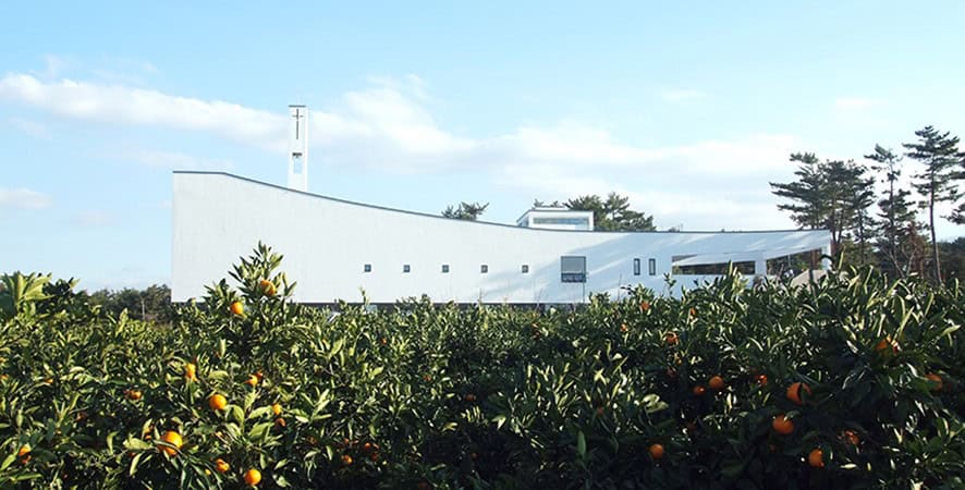 Ja Curve Kilisesi’nin beyaz cephesi kavisli haliyle vurgulanarak doğal manzara ile çelişir. Özenle tasarlanan kavisli form, Oreum adı verilen volkanik patlama sonu meydana gelen pürüzsüz dağlardan ilham alınarak tasarlanmıştır.