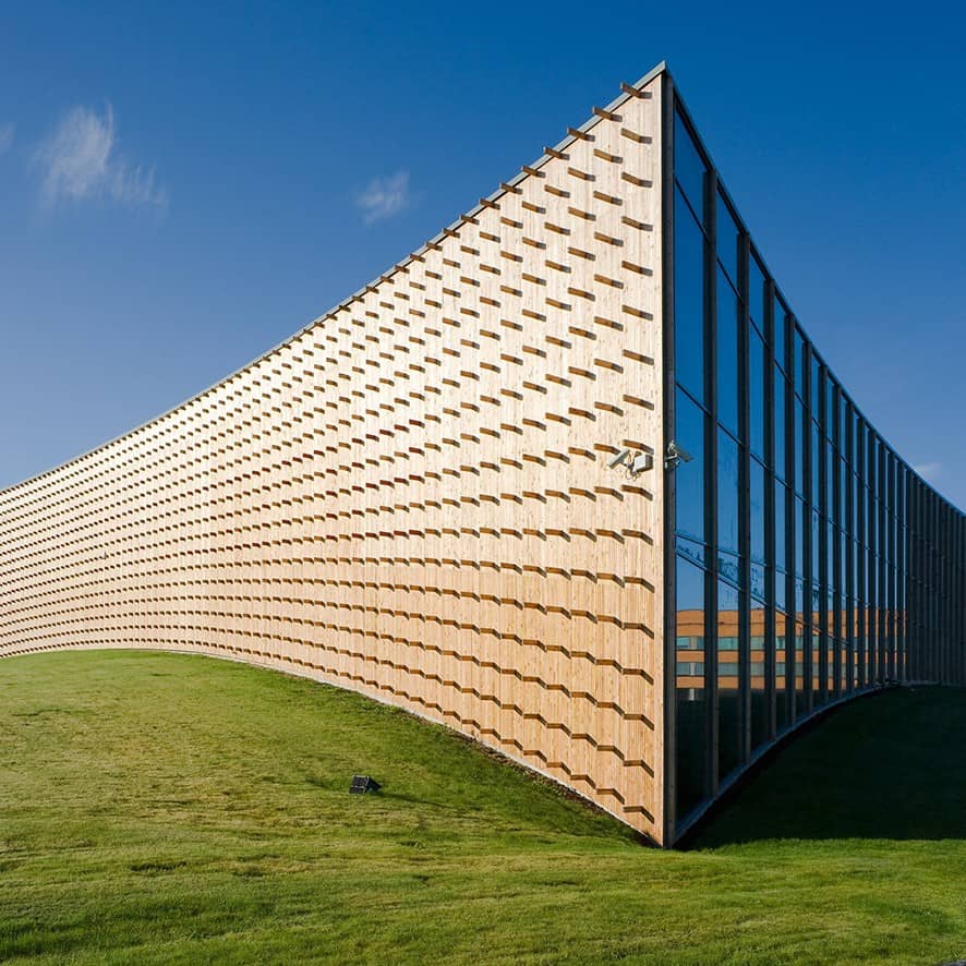 Bu tıp fakültesinde, kavisli cephe dizisi, öğrenci toplama amacına yönelik hoş bir meydan oluşturuyor. Tasarım, tablonun doğal şekli ile birlikte hareket edip bütünleşerek, ıssız bir kampüs ortamına neden olmaktan ziyade sürekliliği teşvik eder. Bina da, bina çevresindeki peyzajın panoramik manzaralarını sunmaktadır.