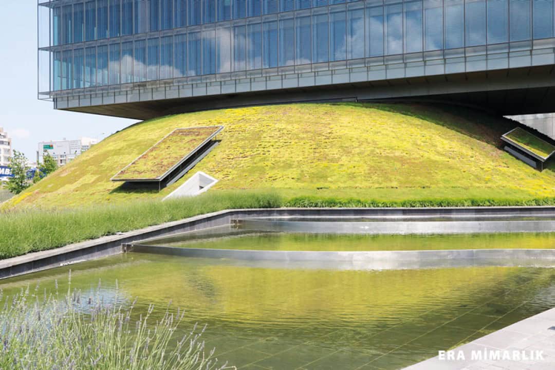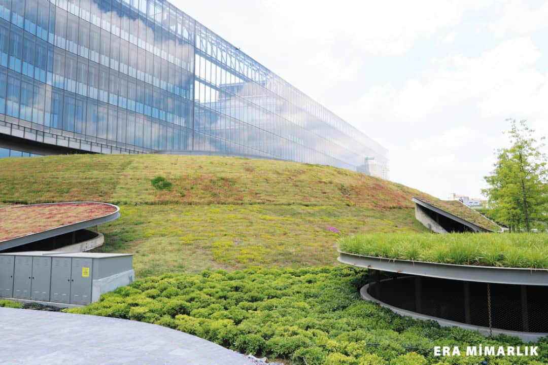Öncelikli olarak bitkilendirilmiş yeşil alanlar olarak tasarlanan tepelerin altındaki mekânların yaşam ve konfor faktörü göz önüne alınarak kabuk döşemelerin su ve ısı yalıtımının en üst düzeyde sağlanması hedeflendi.