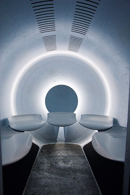 Yatay silindir bölmelerden oluşan vagonlara yerleşen ziyaretçiler bu asansör sistemiyle yapının eğimli izinden giderek en yüksek noktadan manzaraya erişebilmektedirler. Kavisli kemerin tepesine yükselen asansör sistemi ziyaretçilerin 630 metre yükseklikten manzarayı görmelerini sağlar. Ayrıca kompartman kapılarında asansör yolculuğu boyunca kemerin iç yapısını ve manzarayı izlemelerine imkan veren cam pencereler bulunur. Tasarımında matematiksel hassasiyetler göz önünde bulundurulan sembolik kemer sade ve basit estetik yaklaşımıyla Amerikan anıtlarının geleneğini fütüristik bir şekilde yorumlanmış biçimidir.