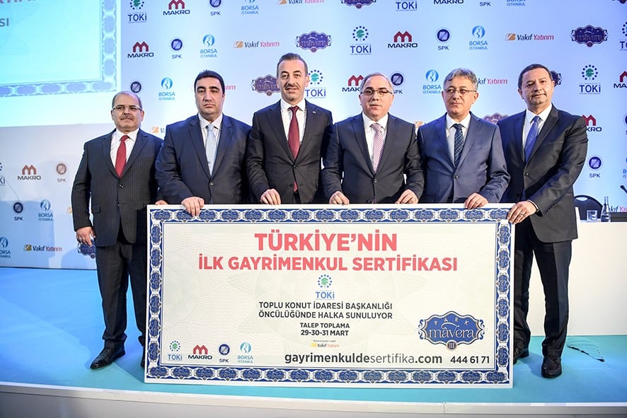 Gayrimenkul Sertifikasının detayları, TOKİ Başkanı Mehmet Ergün Turan, Sermaye Piyasası Kurulu Başkanı Dr. Vahdettin Ertaş, Makro İnşaat Yönetim Kurulu Başkanı Ercan Uyan ve Vakıf Yatırım Genel Müdürü Kemal Şahin’in katılımıyla gerçekleştirilen toplantıda paylaşıldı. Buna göre, gelir paylaşımı modeliyle TOKİ ve Makro İnşaat işbirliğiyle inşa edilen Park Mavera 3 Projesi’nin belli bir kısmı, paylara bölünecek ve paylar, inşaatın teslim süresi olan 36 ay boyunca Borsa İstanbul’da işlem görecek. Bölünen paylar doğrultusunda inşaatın teslim süresi olan 36 ay boyunca Borsa İstanbul’da işlem görecek sertifikalarla, dileyen herkes projeye ortak olabilecek.
