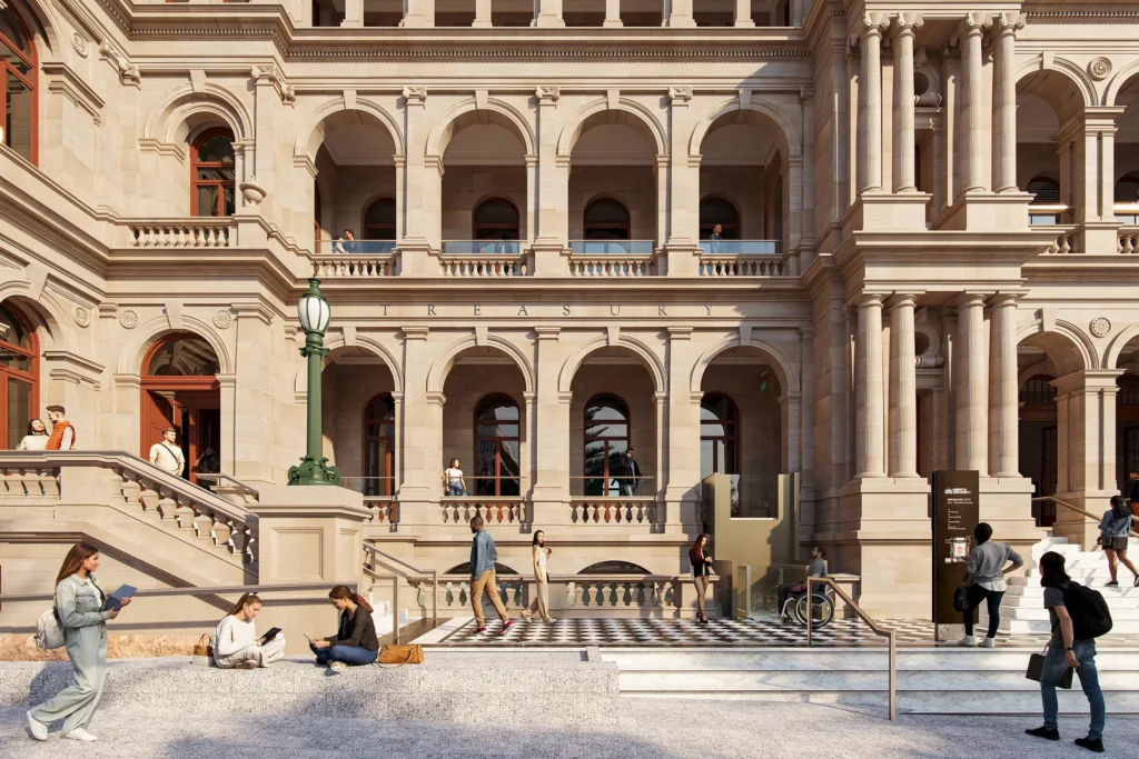 Avustralya’nın önemli kentlerinden Brisbane, mimari miras ile çağdaş eğitim anlayışını buluşturan dikkat çekici bir dönüşüm projesine hazırlanıyor. Kentin simgesel yapılarından biri olan tarihi Treasury Building (Hazine Binası), kapsamlı bir yeniden işlevlendirme süreciyle modern bir üniversite kampüsüne dönüşüyor. Griffith University öncülüğünde yürütülen bu proje, yalnızca fiziksel bir dönüşüm değil; aynı zamanda kentsel hafıza, eğitim ve kamusal yaşam arasında güçlü bir bağ kurmayı hedefliyor.