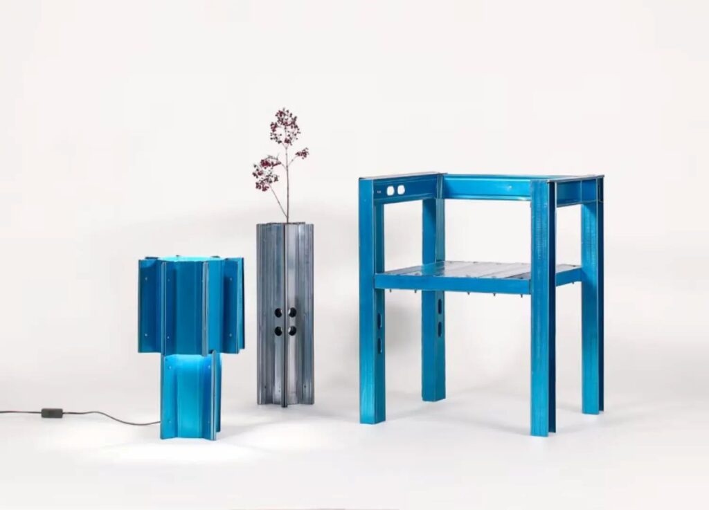Mimarlıkta bazı malzemeler vardır; hep oradadır ama kimse onları gerçekten görmez. Alçıpan duvarların içinde saklanan metal profillerde de durum tam olarak böyle. Claudio Larcher ve Sofia D’Andrea’nın geliştirdiği Drywall Collection ise bu görünmez yapı elemanlarını sahnenin önüne çıkarıyor. Koleksiyonun çıkış noktası oldukça basit: İnşaatın teknik dünyasında kullanılan standart metal profiller, küçük müdahalelerle günlük kullanım nesnelerine dönüşebiliyor. Tasarımcılar bu profilleri kesip bükerek sandalye, aydınlatma elemanı, masa ve vazo gibi objeler üretmiş. Ama malzemenin endüstriyel karakteri özellikle korunmuş. Yani ortaya çıkan nesneler hâlâ bir yapı elemanı olduklarını saklamıyor. Bir tür sanat-teknik diyebilirim.