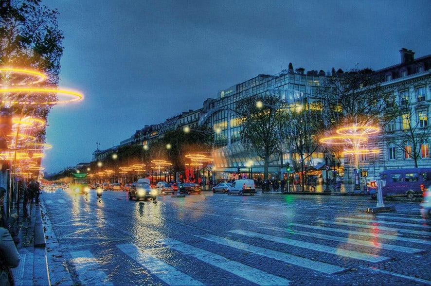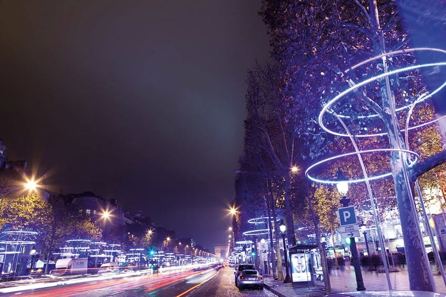 Sky Ring yani ‘Gökyüzü Yüzükleri’, ACT Aydınlatma Tasarım firmasının Paris’ in işlek caddelerinden birinde düzenlediği yaratıcı bir aydınlatma kurulumu. Aydınlatmalar, kentsel gelişimi görsel bir bütünlükle korumayı amaçlayan mimarların kent deneyimleri sonucu ortaya çıkmakta. 106 çift metal parçadan oluşan ışıklar birbirine sabitlenerek, 10 metre ile 5 metre yüksekliğe yerleştirilmiş. Gökyüzünde dinamik bir ışık sirkülasyonu olarak tasarlanan ışıklı yüzükler City Walk halkına, ziyaretçilere ve yoldan geçenlere 1,5 km boyunca eşlik ediyor. Halkaların içinde ve dışında bulunan LED ışıklar sayesinde özel renk dizeleri caddeyi hareketli kılıyor. İç halkalar görsel bir süreklik oluşturmak için yatayda aynı yüksekliğe konumlandırılmışken iç halkanın etrafında dönen dış halka, sistemin dinamizmini güçlendirmek için farklı açılarda konumlandırılış. Mevsim geçişleri ve özel eğlence festival dönemlerinde de bu LED ler farklı programlarla düzenlenebilme özelliğiyle farklı bir kullanım alternatifi oluyor. Işık dalgaları alternatif yol aydınlatmasının ilüzyonist varlığı olarak kent yaşamını akıcı hale getiriyor. Bu aydınlatma sistemi zorlu iklim koşullarına dayanıklı uzun ömürlü ürün olarak tasarlanmış. Bu yaratıcılık yaklaşımı ile birlikte City Walk yalnızca yayalar için bir geçit alanı değil, aynı zamanda yerli halkın ve ziyaretçilerin buluştuğu destinasyon merkezi haline gelmekte.